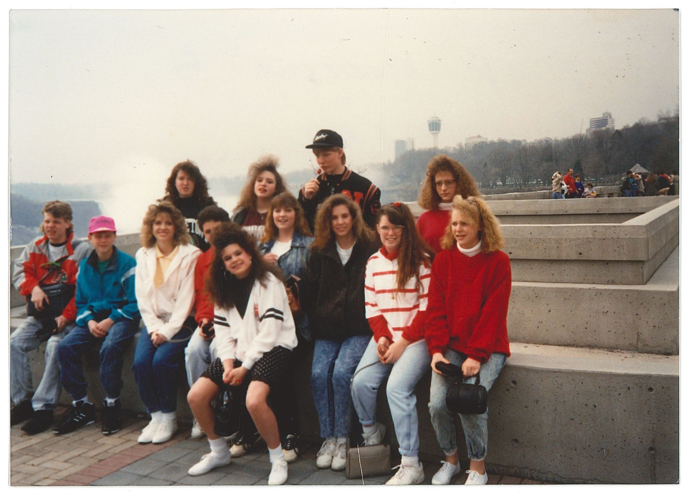 The Newton Falls United Methodist Youth Fellowship group during a three day retreat in Niagara Falls, Canada. Left to right, first row: Jason Hertig, Todd Elliott, Judy Dennis, Matt Kirkland, Stacy McGarr, Jessie Brymer, Nancy Dennis, Dawnya Dougherty & Jennifer Hertig. Second row: Heather Richter, Pam Slater, Chris Pattinson & Valerie Kennedy.Photograph Details