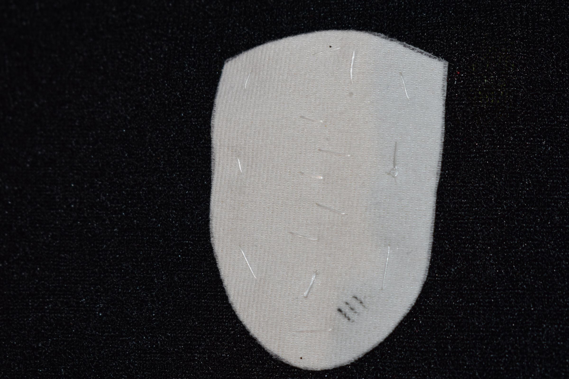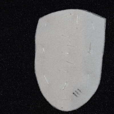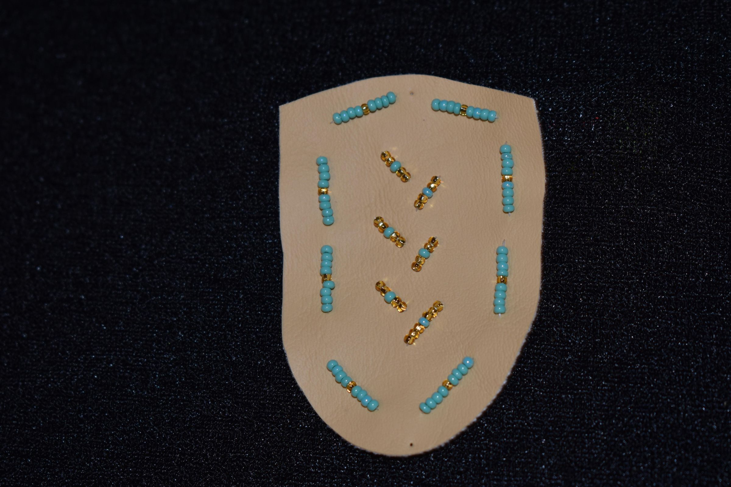 Vamp donated by Jackie Cree. Turquoise and gold glass seed beads on vinyl.