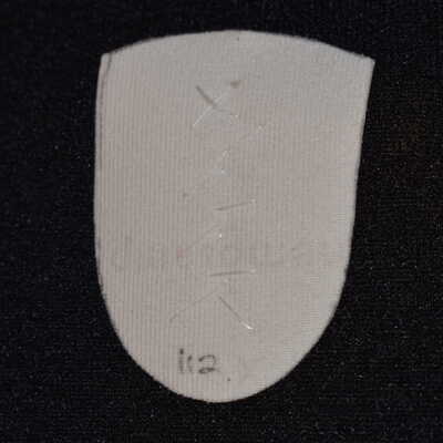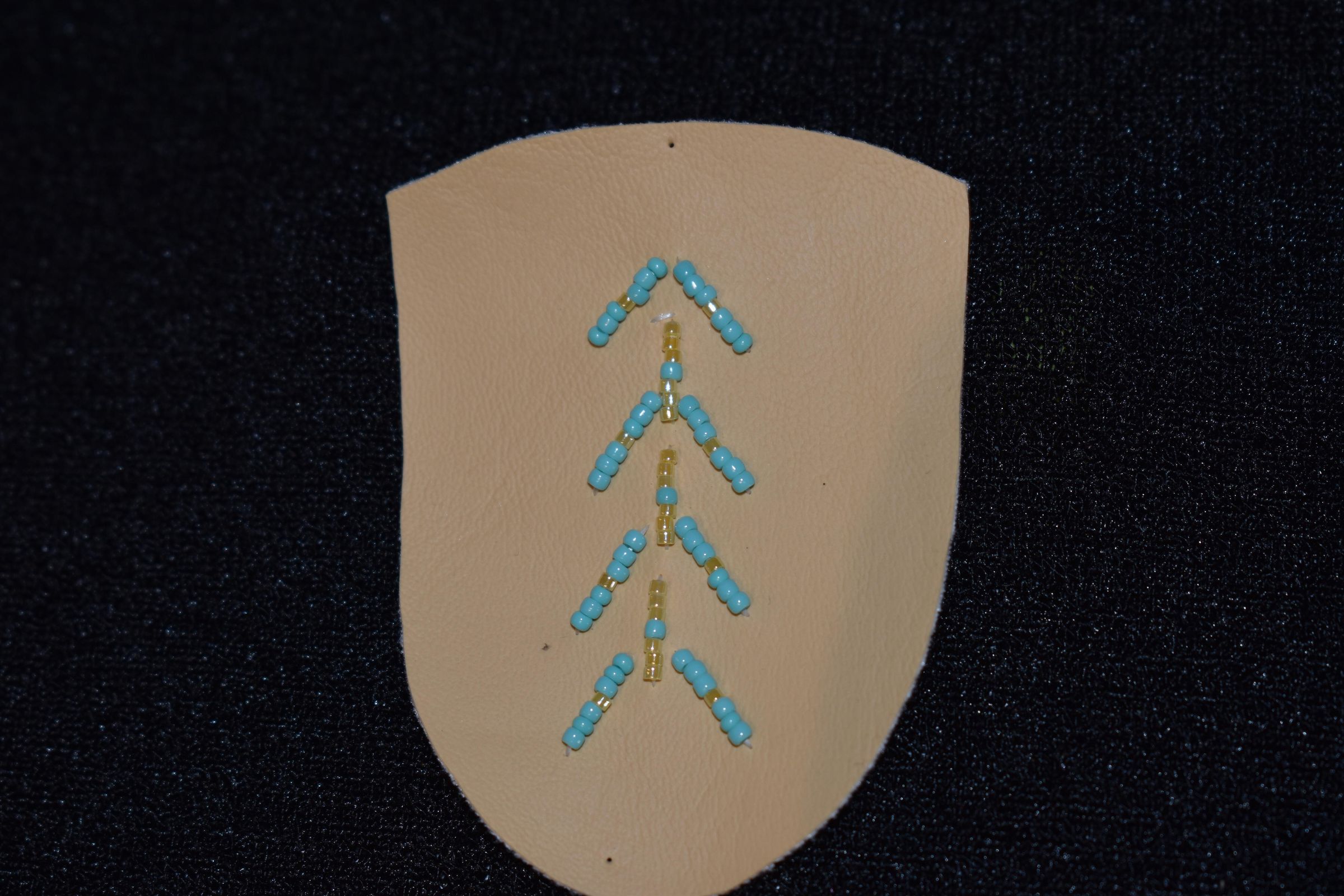 Vamp donated by Jackie Cree. Turquoise and gold glass seed beads on vinyl.