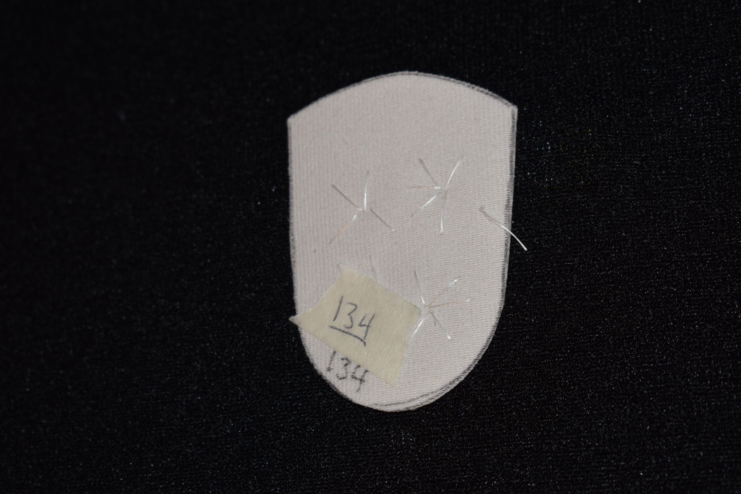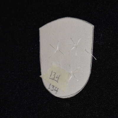 Vamp donated by Jackie Cree. Teal glass seed beads on vinyl.