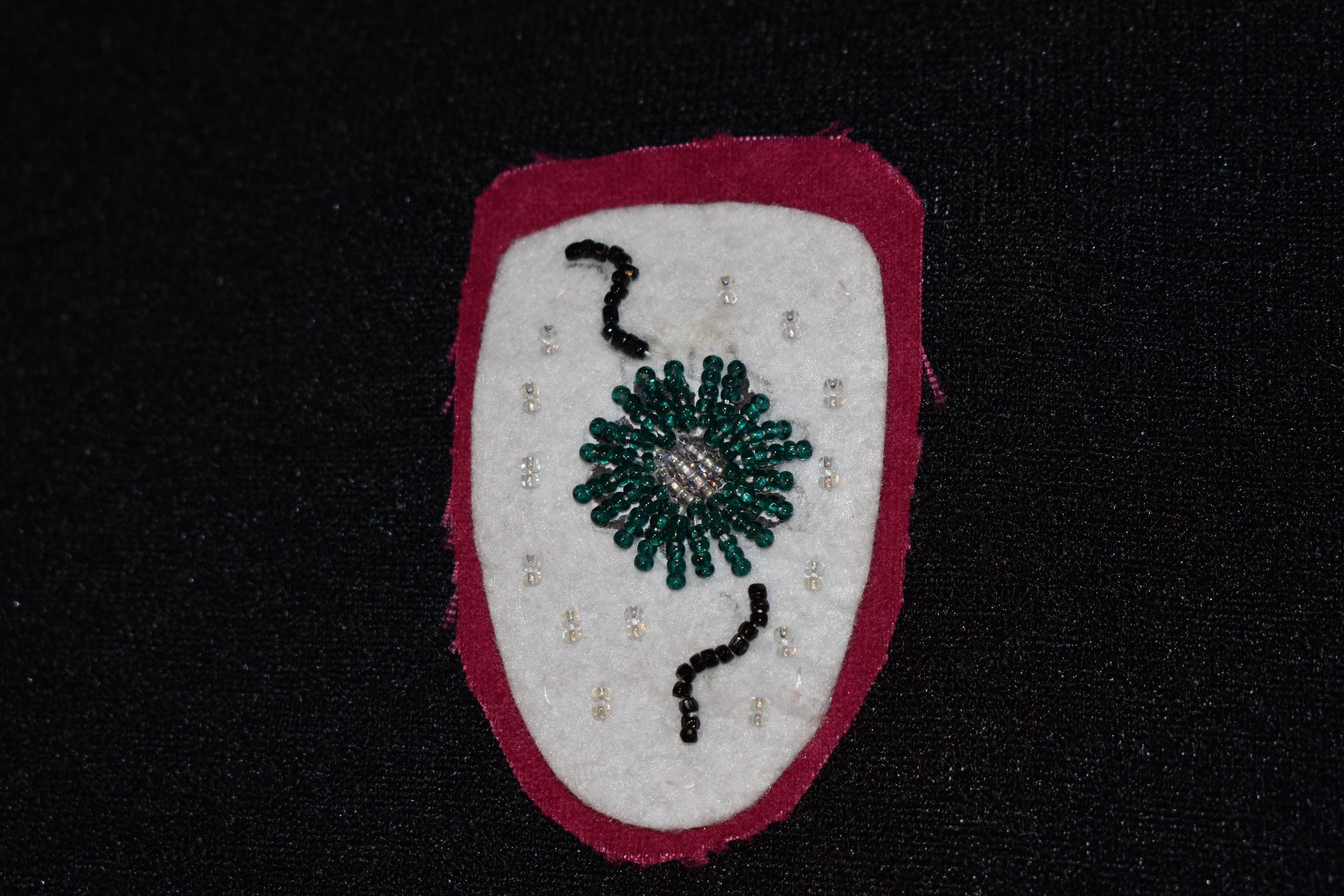 Clear grey and green glass seed beads were used to create the flower.black beads were used to create leaves, clear beads were placed around it.Cataloged By