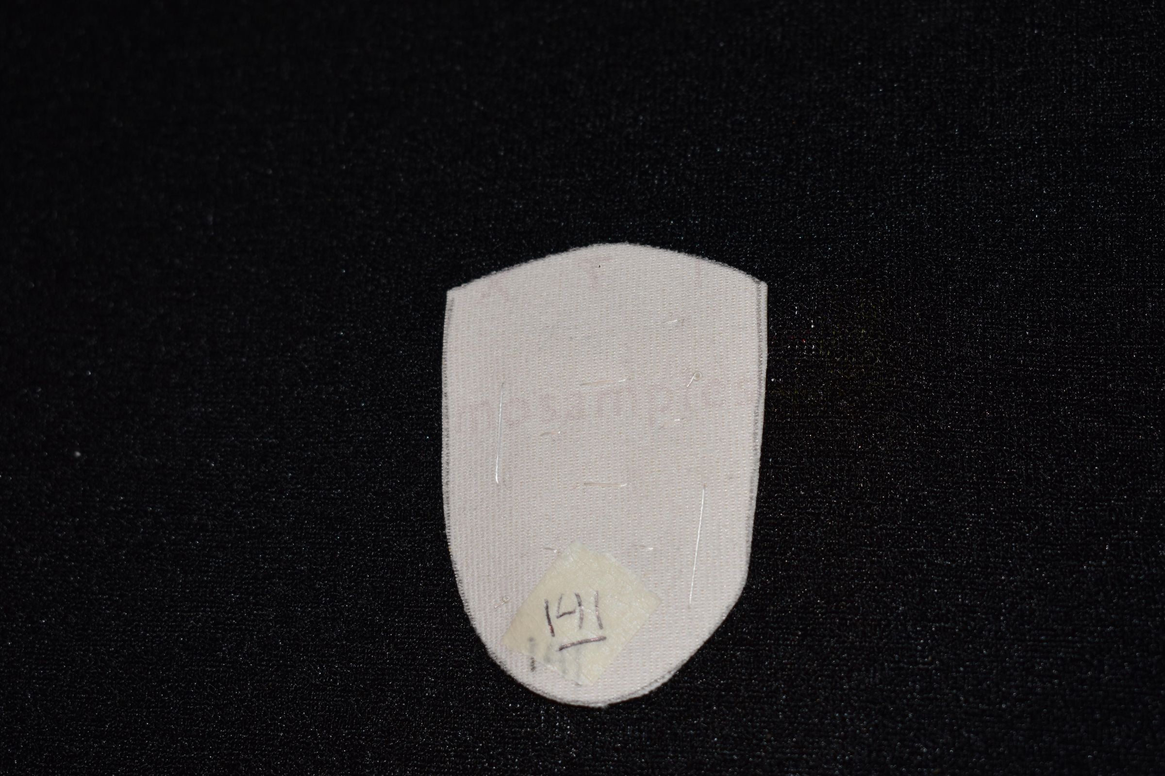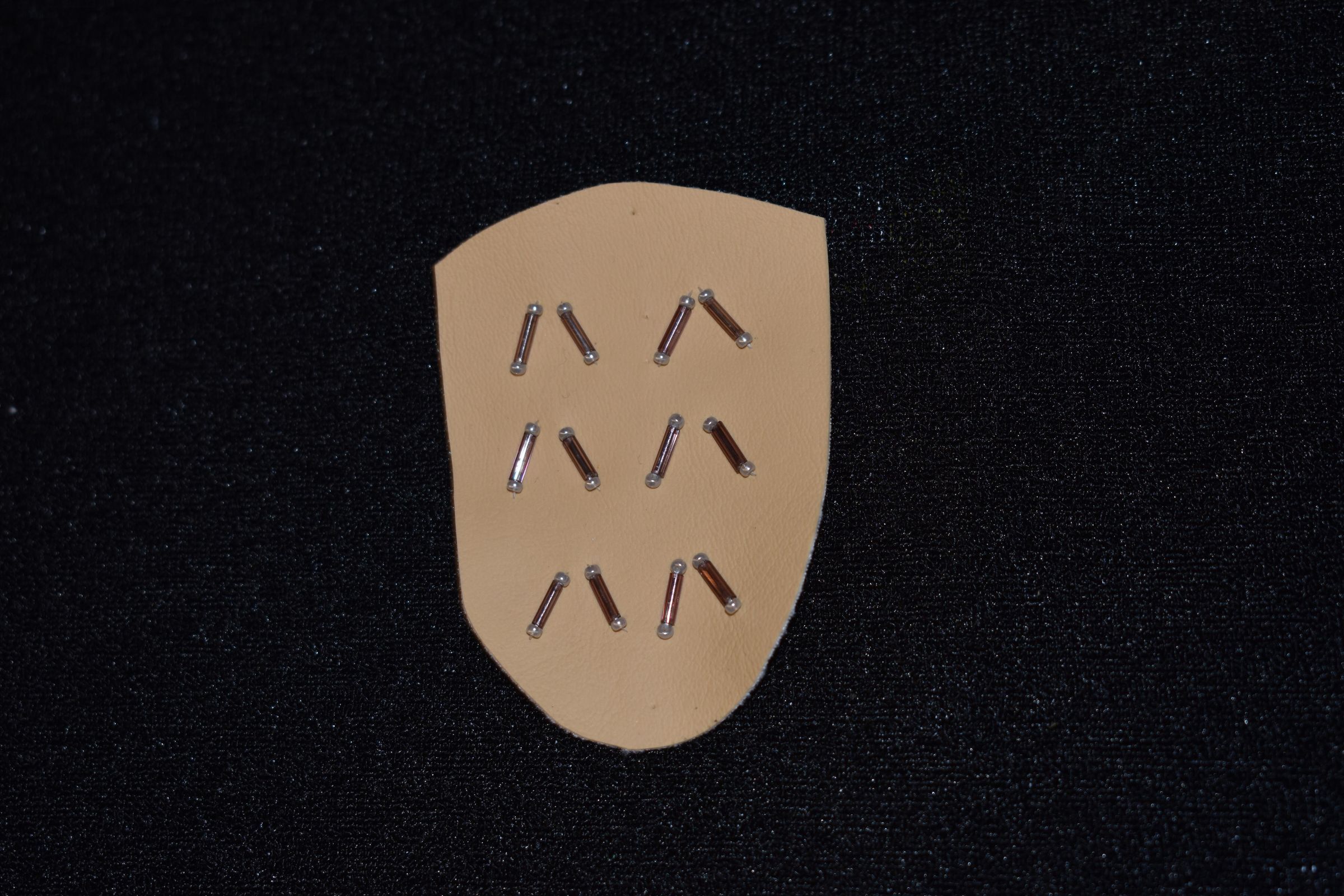 Vamp donated by Jackie Cree. Purple glass bugle beads and purple glass seed beads on vinyl.