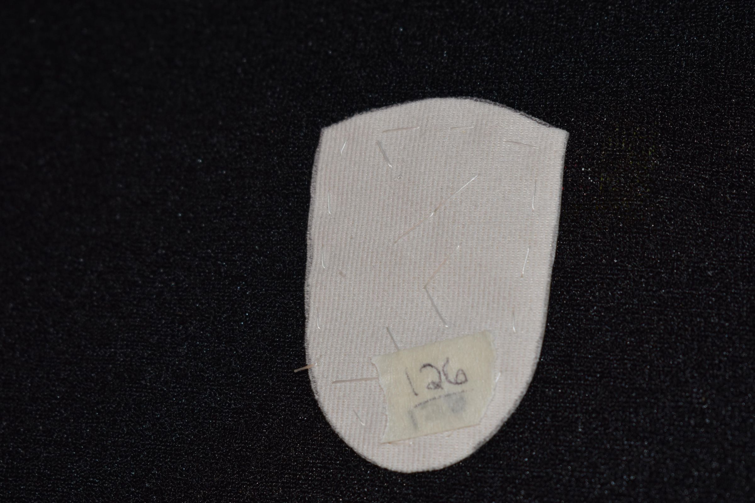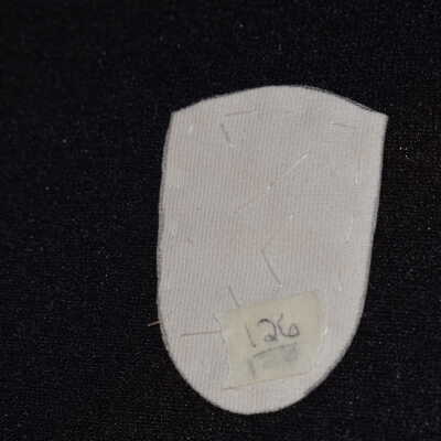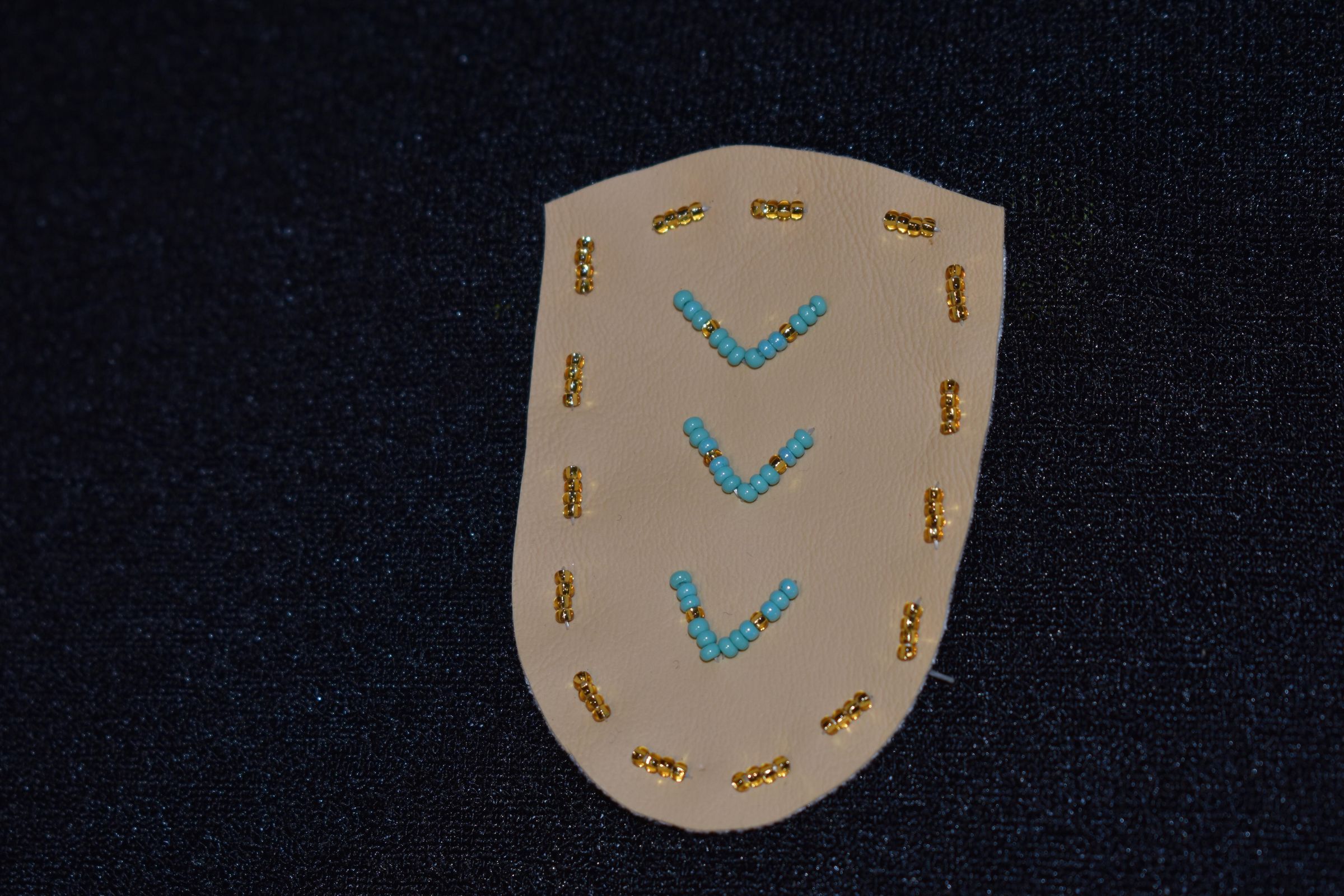 Vamp donated by Jackie Cree. Turquoise and gold glass seed beads on vinyl.