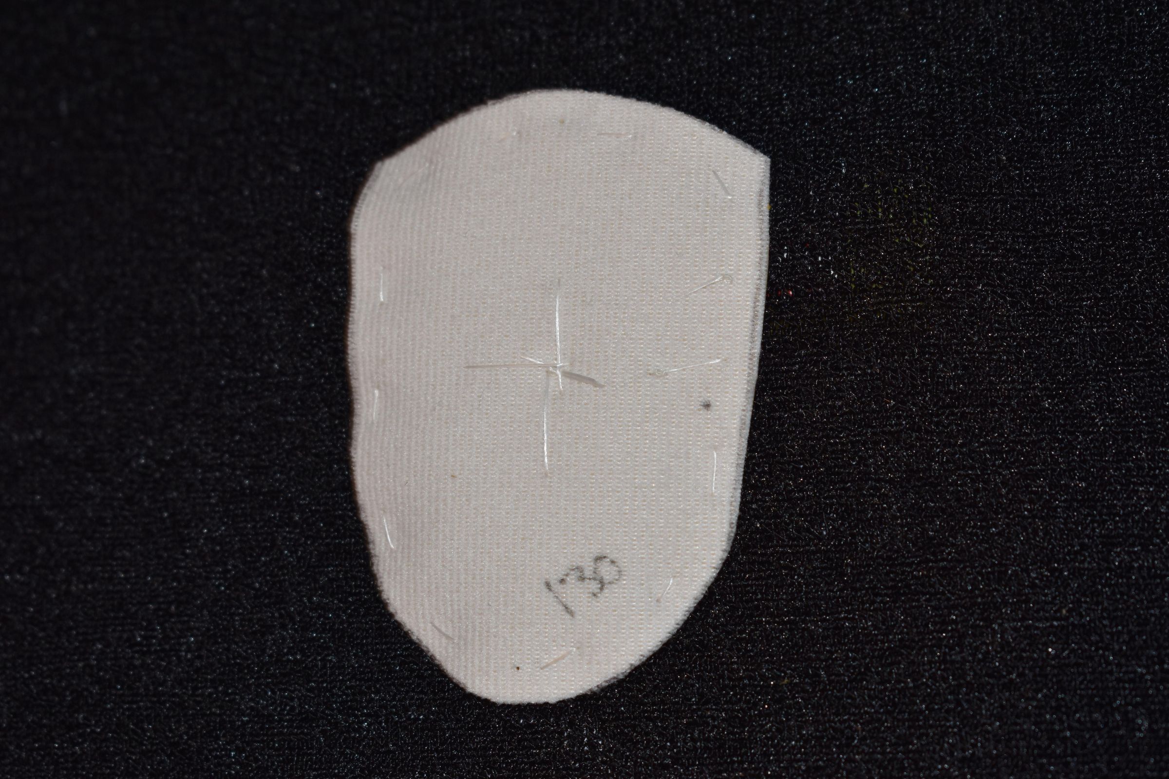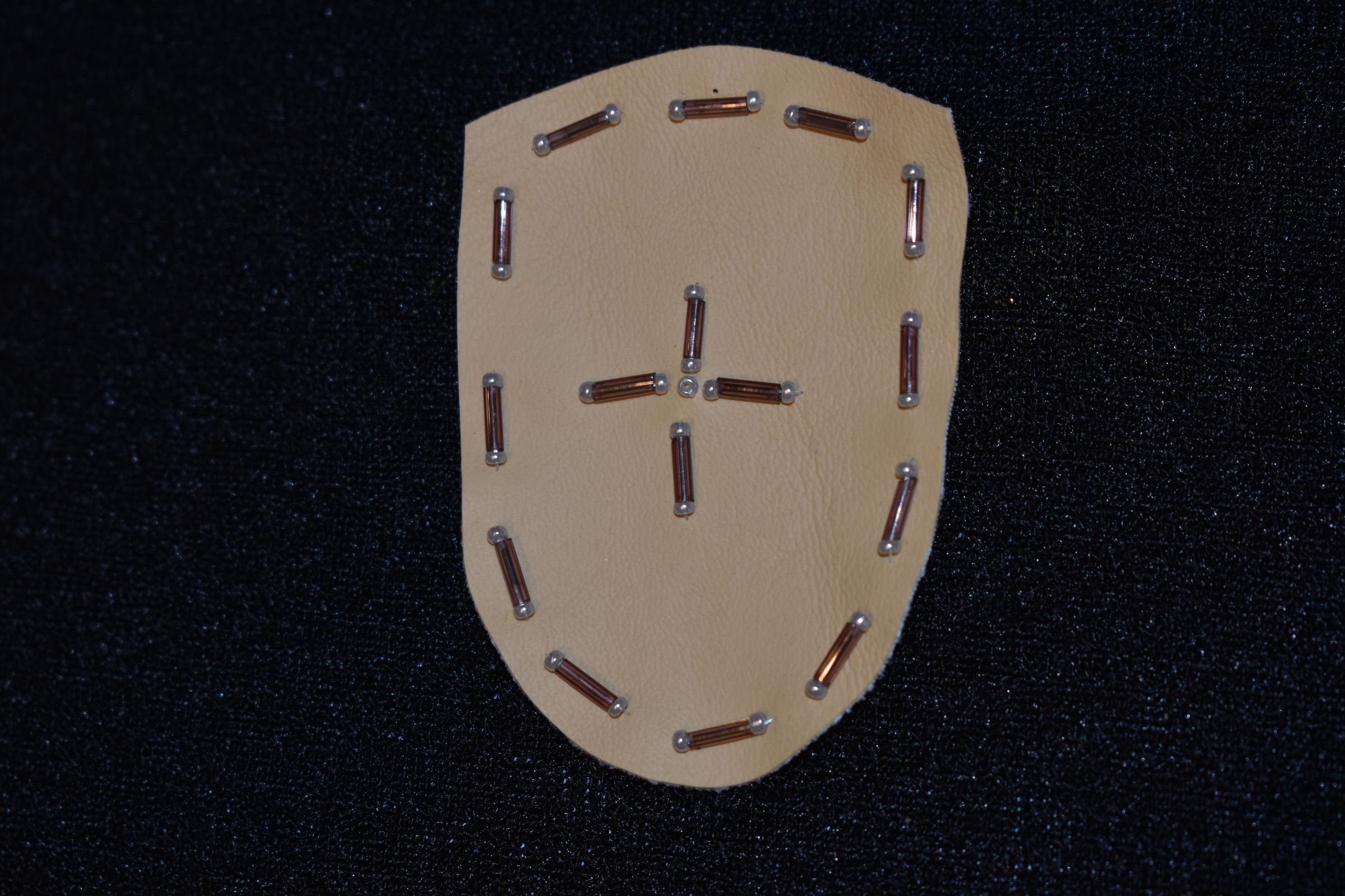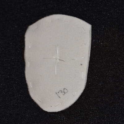 Vamp donated by Jackie Cree. Purple bugle glass beads and purple glass seed beads on vinyl.
