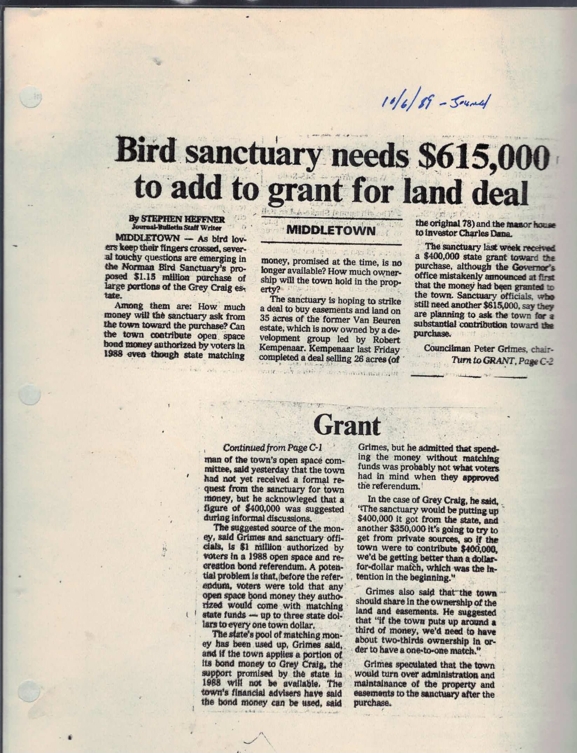 "As bird lovers keep their fingers crossed, several touchy questions are emerging in the Norman Bird Sanctuary's proposed $1.15 million purchase of large portions of the Grey Craig estate."Publication Details
