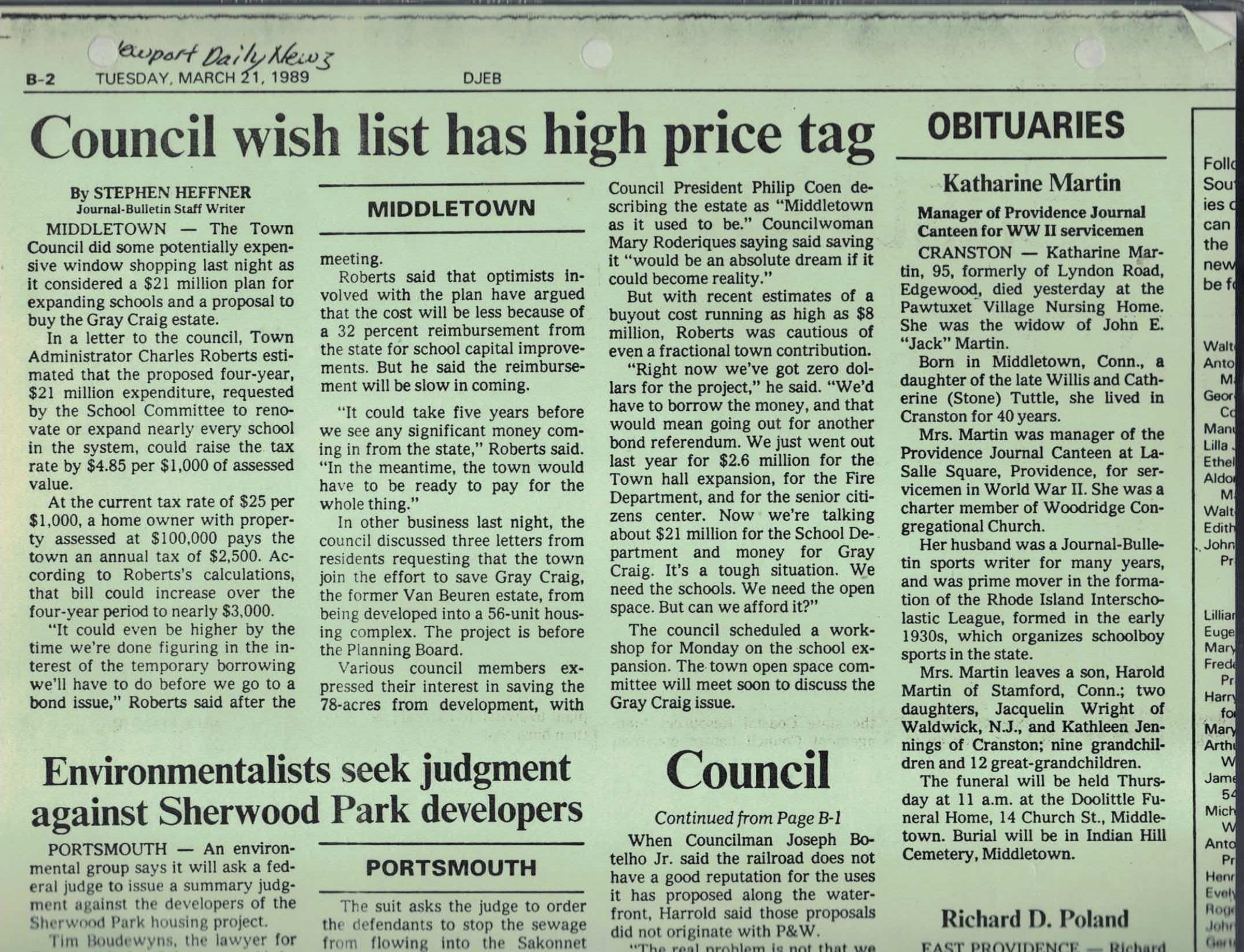 Newport Daily News, March 1989Collection
