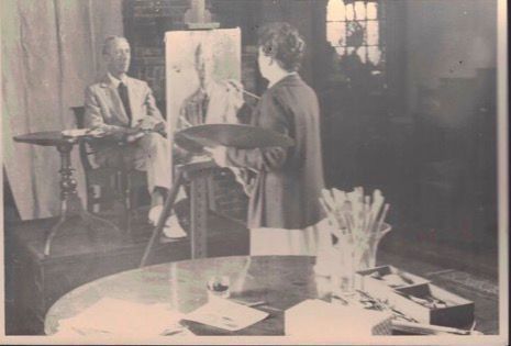 Mabel painting a portrait in her studio at Paradise FarmCollection