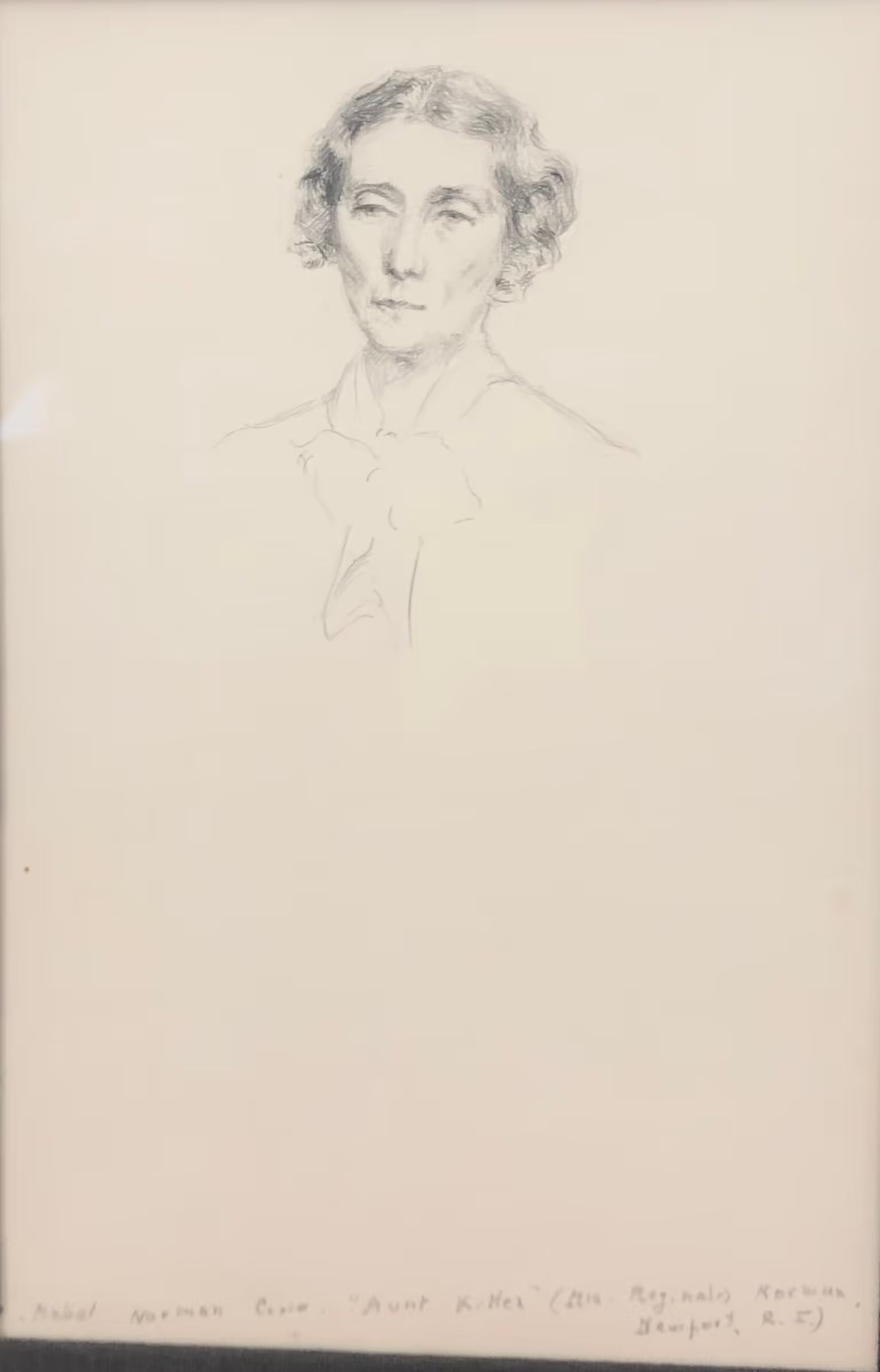 Mabel Norman Cerio's sketch of "Aunt Kitten (Mrs. Reginald Norman, Newport, R.I.)." Mrs. Reginald Norman, Augusta McCarty Little (1879-1965), was the wife of Mabel's older brother, Reginald.Collection