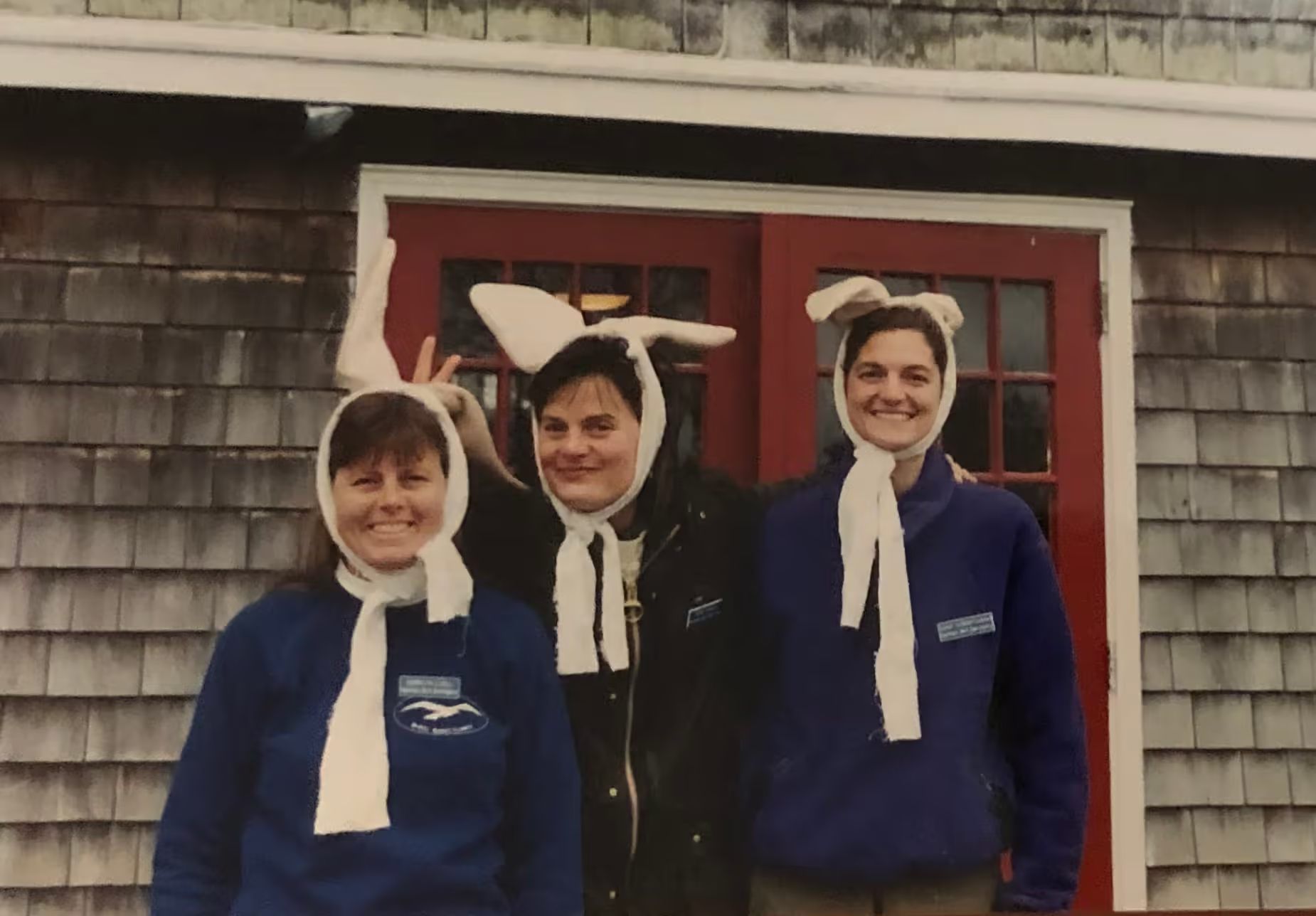 Staff pose in bunny ears.