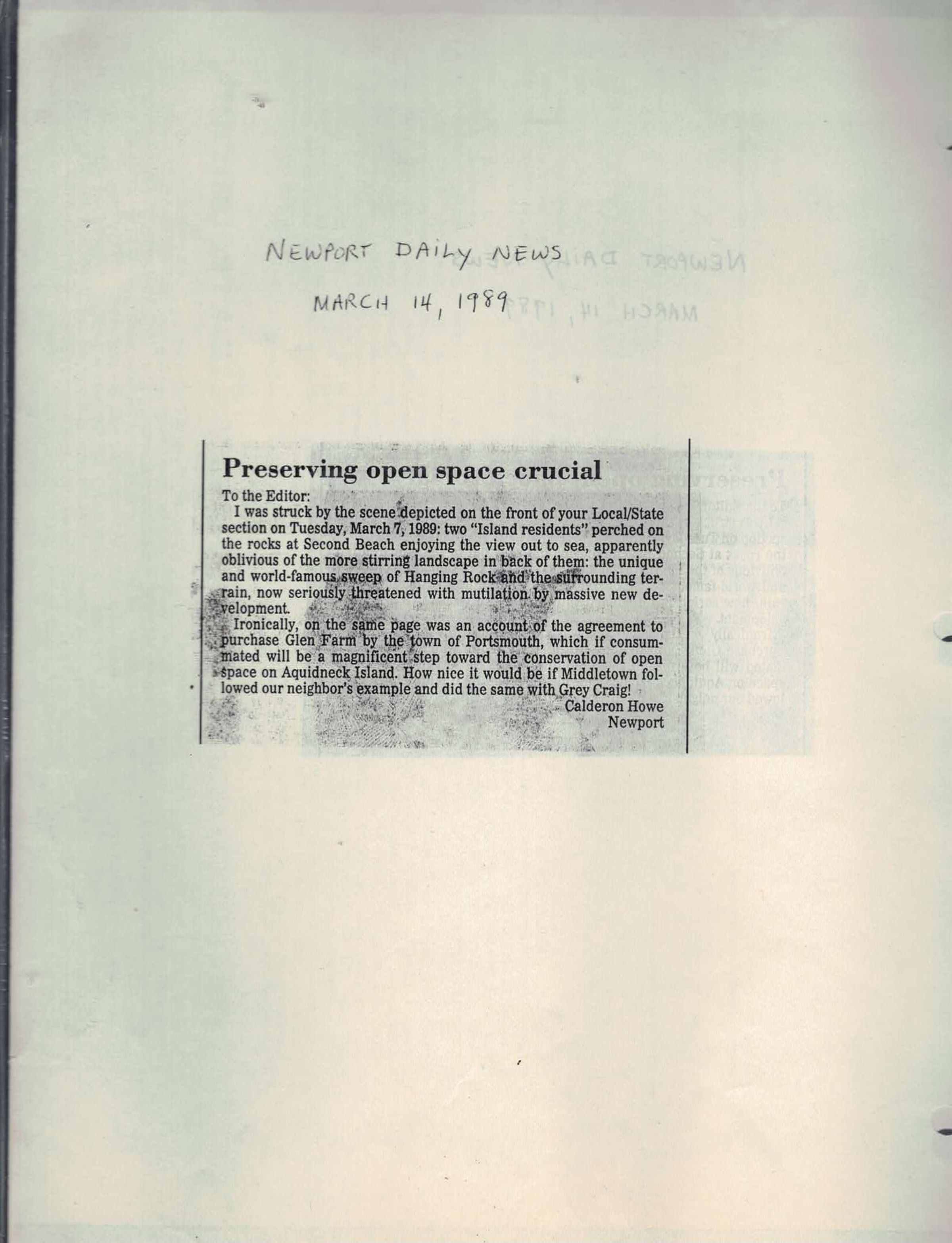 "Preserving open space crucial" by Calderon Howe, NewportPublication Details