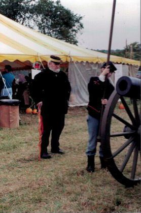 Reenactors pose with artillery