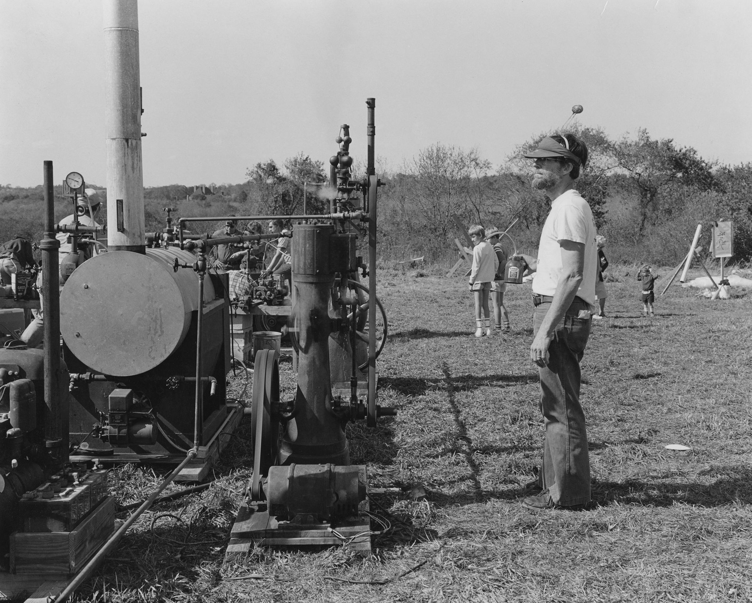 Richard (Chip) Benson with his steam engine display at Harvest Fair. Photographed by Jean Boyd, a Yale photography student at the time.Collection