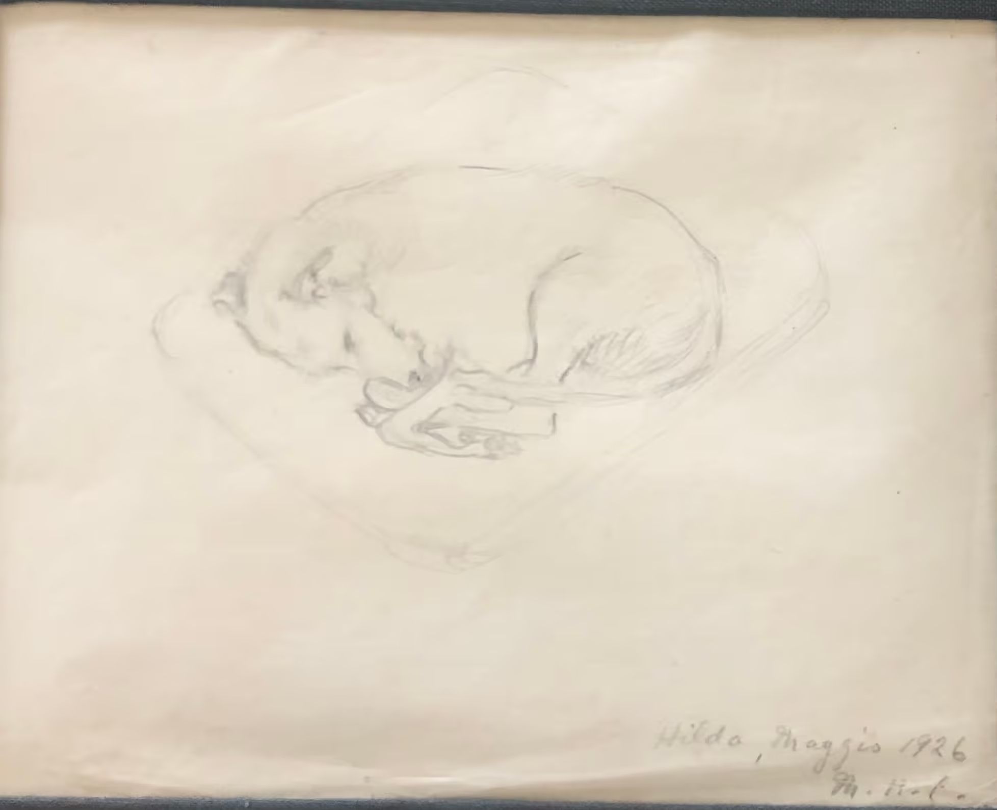 Sketch of Hilda, likely Mabel's dog. Signed: "Hilda, (Maggie's?) 1926 (illegible)."Collection