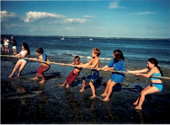 Campers playing Tug of Rope at Third Beach