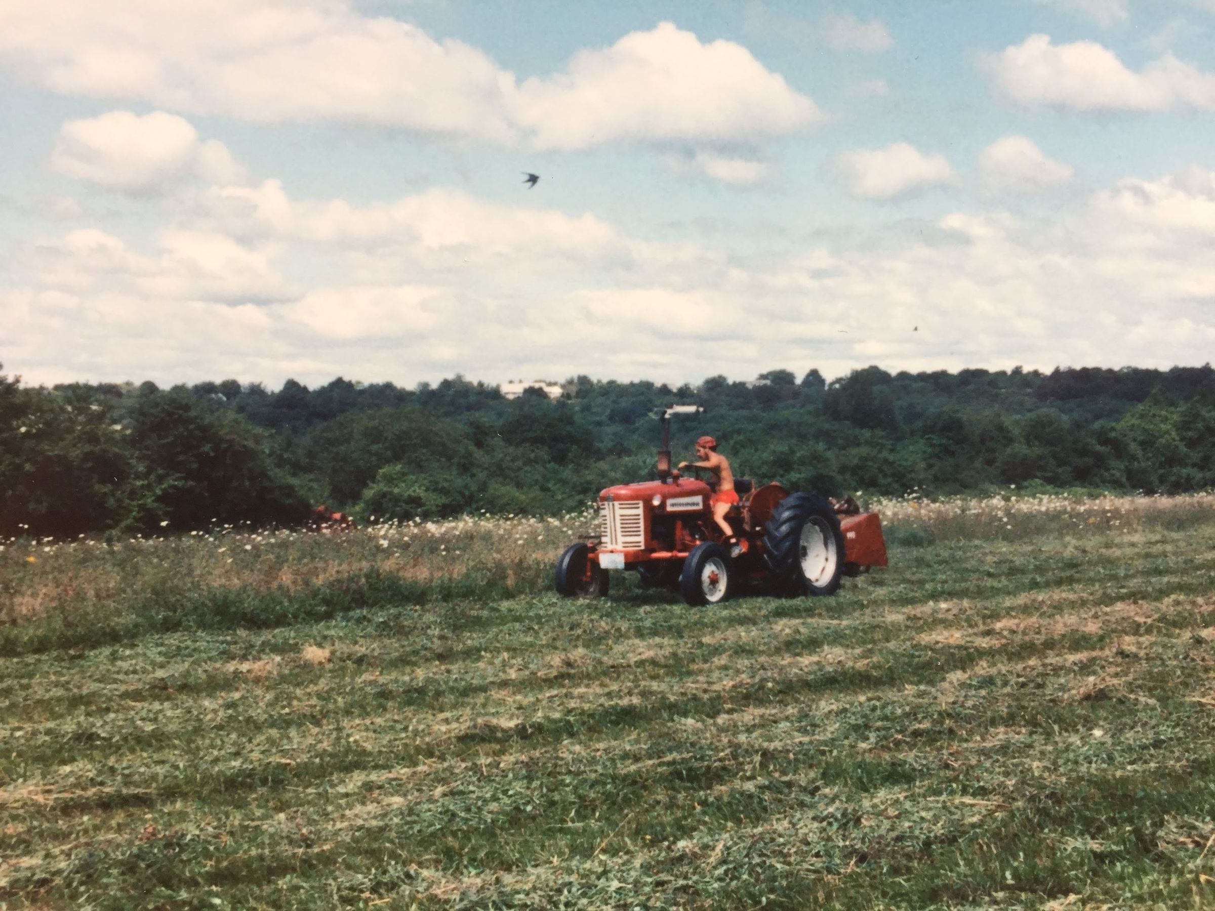 Volunteer mowing the North Field