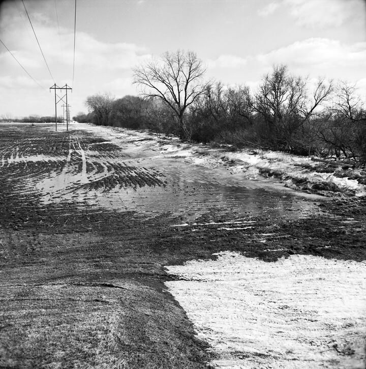 A Dense Shelterbelt That Has Caught Snow During The Winter, Causing Uneven Moisture In The fFeld And A Problem For The Farmer. March 2002Entry/Object ID