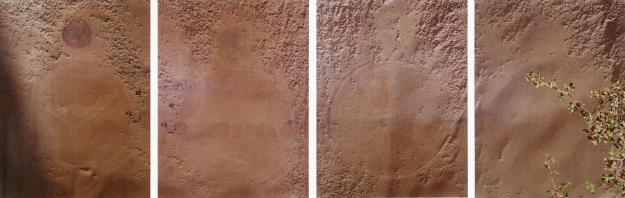 Adjacent Shields, Almost Obliterated, at the Base of a Sandstone Wall, Montana