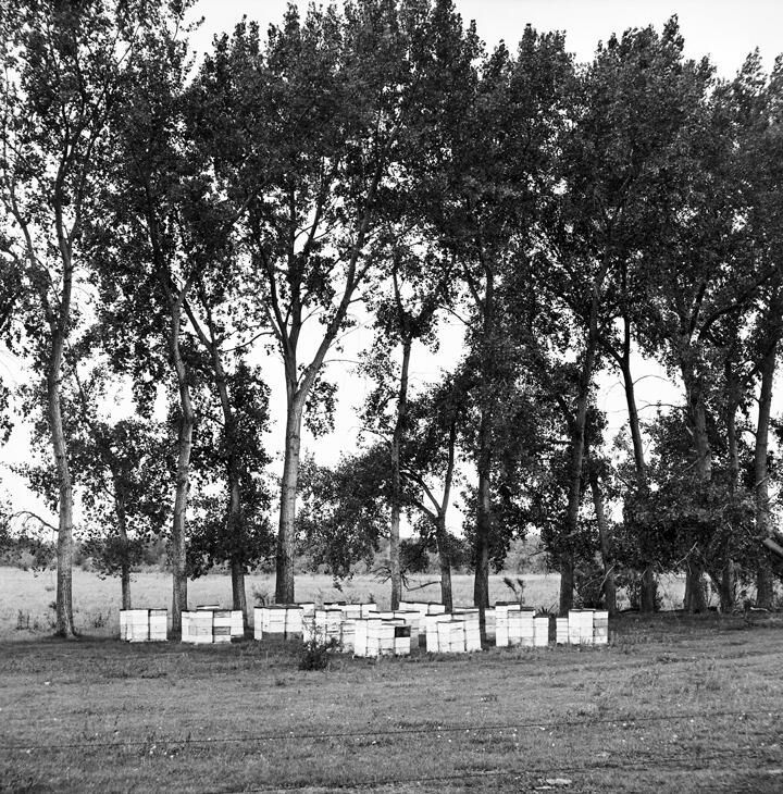 Beehives By Single Row Cottonwood Shelterbelt. Fall 2000