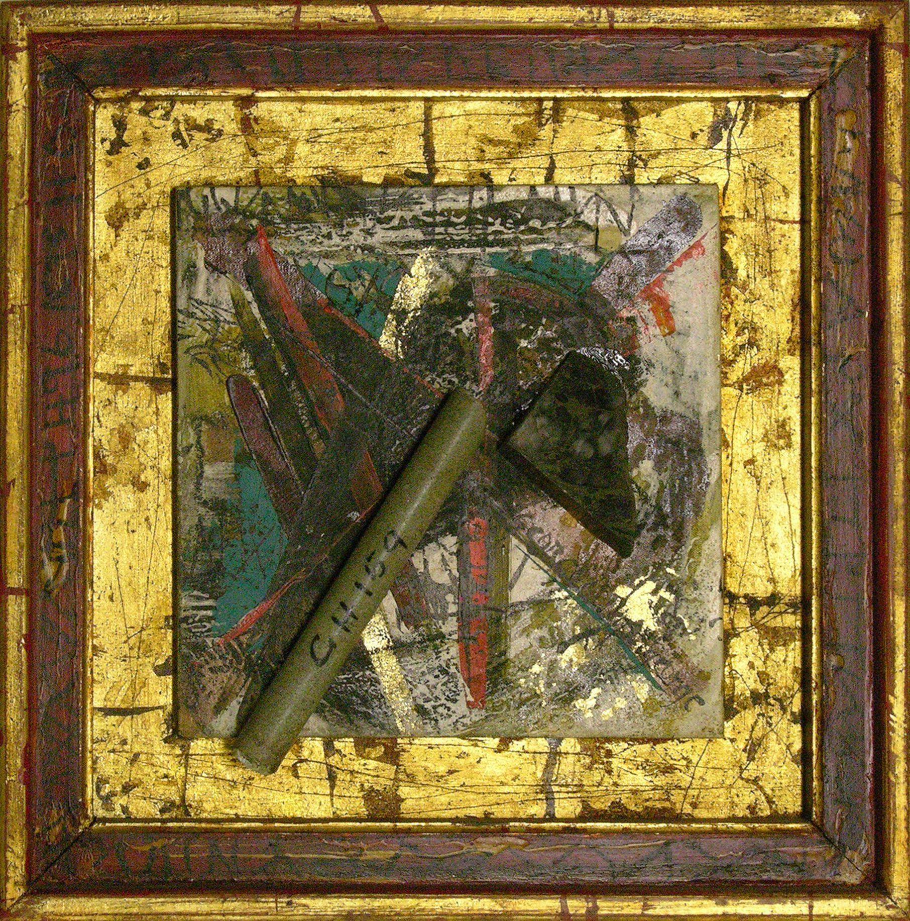 wood, paint, gold leaf, mixed media, plastic