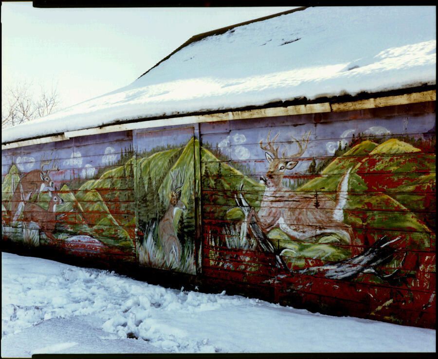 Deer Barn Painting by Fridl Eggl, Who Farmed the Bob Brightbill Homestead, Door Closed. ND 81, near Cando, ND. 2/20/81Entry/Object ID