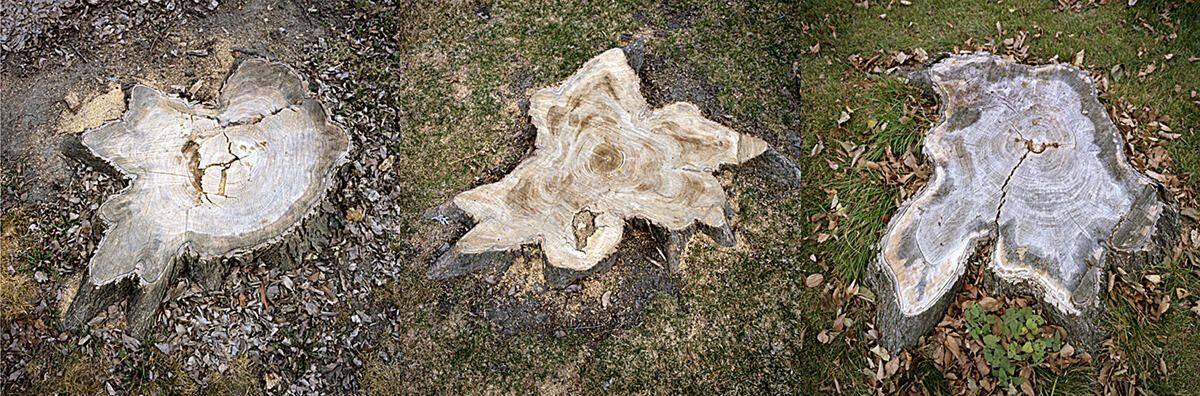 3 elm tree stumps
