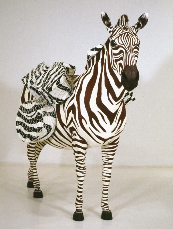 oil, papermache, urethane, hair, epoxy resin, metal, fishnet, cardboard, acrylic