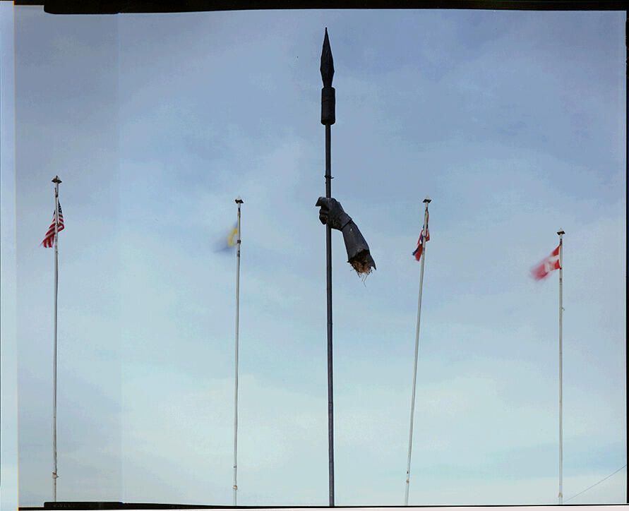 Former Viking Statue. Tioga, ND. 2/19/81