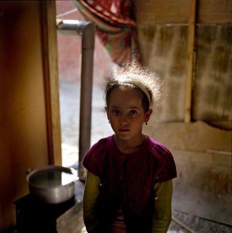 Girl at her cardboard home