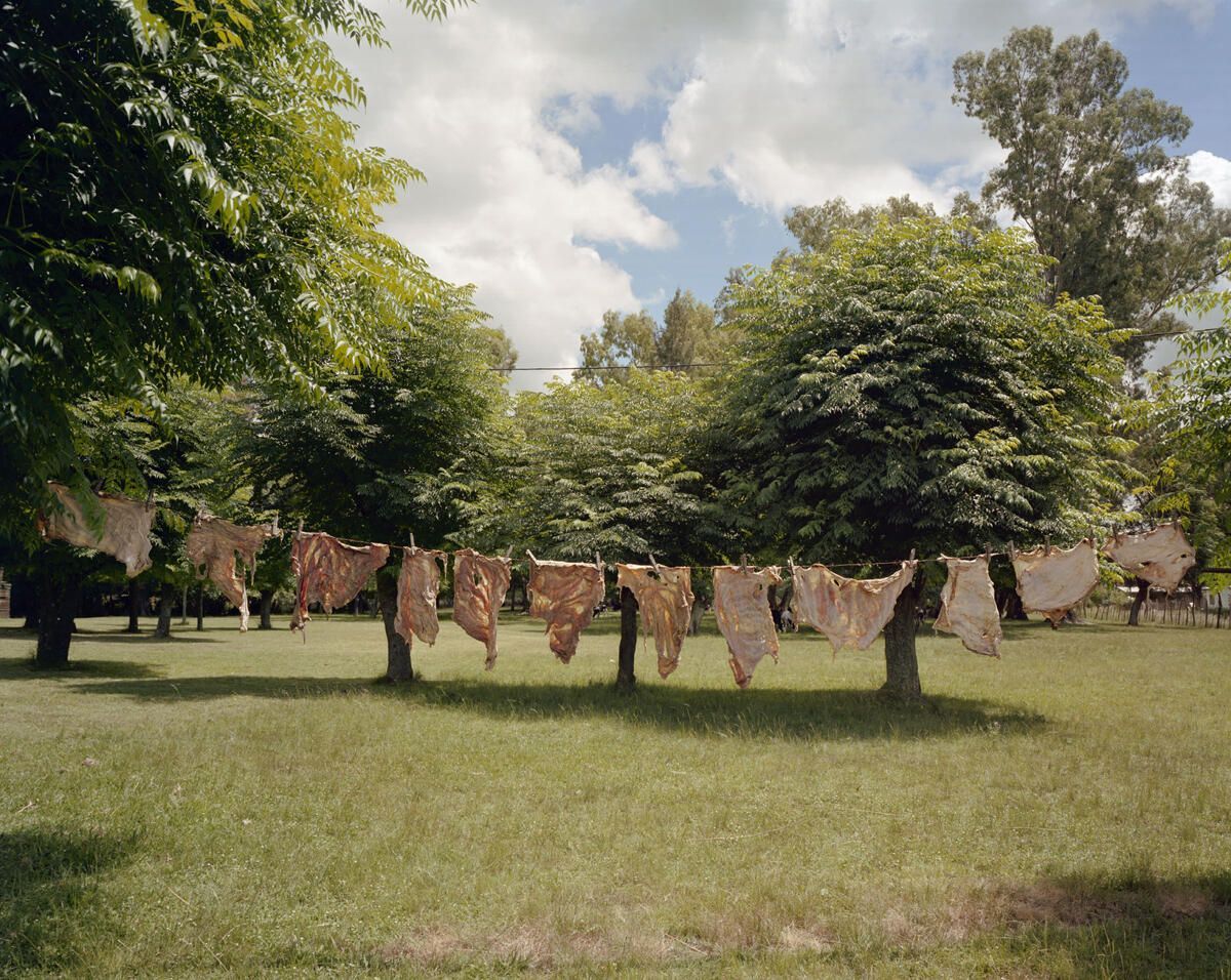 Drying sheep stomachs on