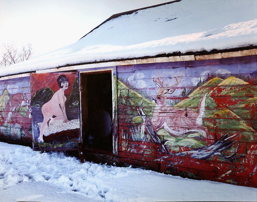 "The Minnesota School Teacher" Barn Painted by Fridl Eggl, Door Open. ND 8, Near Cando, ND. 2/20/81Entry/Object ID