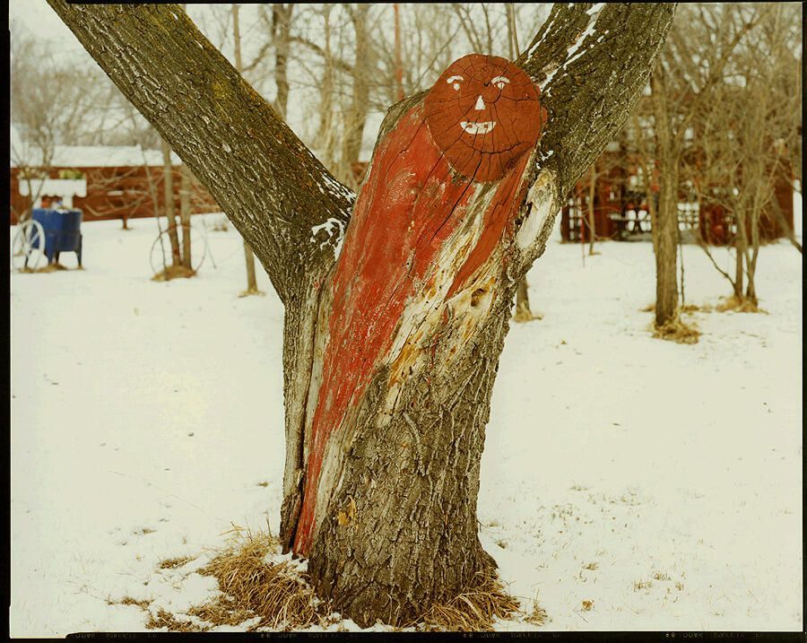 Tree Painted Trunk at Sam Bjertness' Home. ND 18, Hatton, ND. 1/31/81