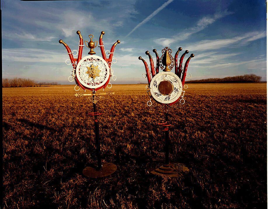 Two Sculptures at Uncle Sig's Jugville. US 81, Auburn, ND. 1/29/81