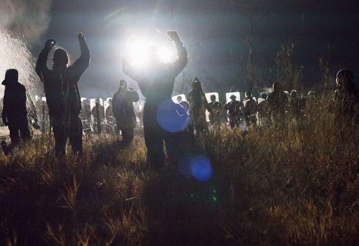 Water Protectors Praying At The Police Line On The Backwater Bridge Stand Off For 10 Hours On The Evening Of November 20th, 2016