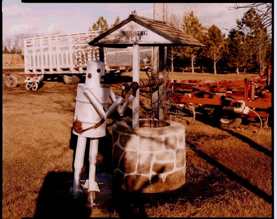 Wishing Well with Tin Man at Albert Redig's, Cathay, ND