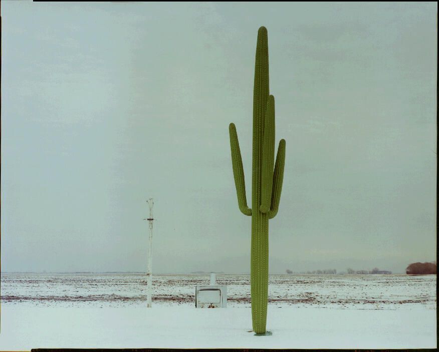 Wooden Cactus in Snow. Henry French's Farm. Cashel, ND. 1/30/81