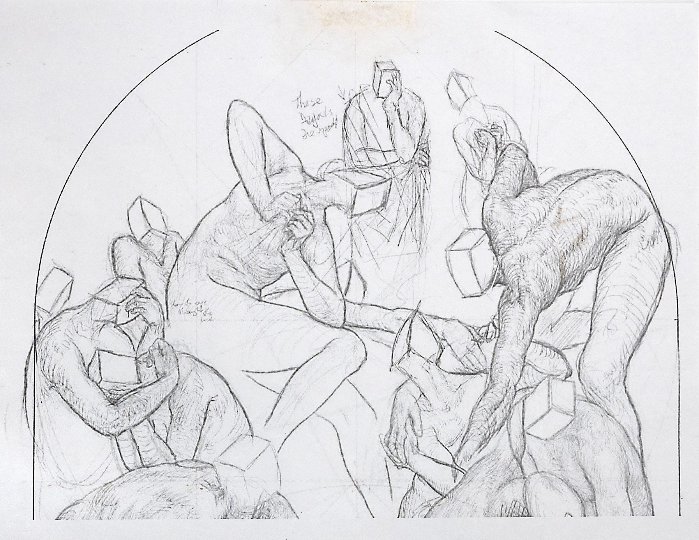 Copy of Graphite Drawing of Figure Placement for "Death of Memnon"Entry/Object ID