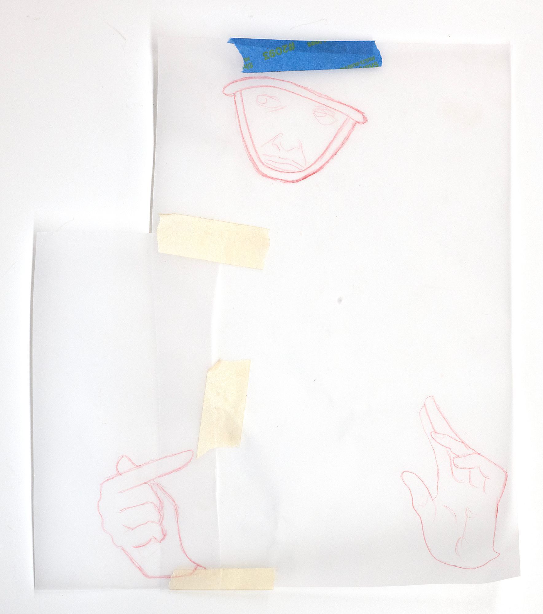 Initial Layout Sketch for Female Character (Face and Hands) for "Tre Volte Lei Gli Fece Le Avance e Tre Volte La Rifuto"Entry/Object ID