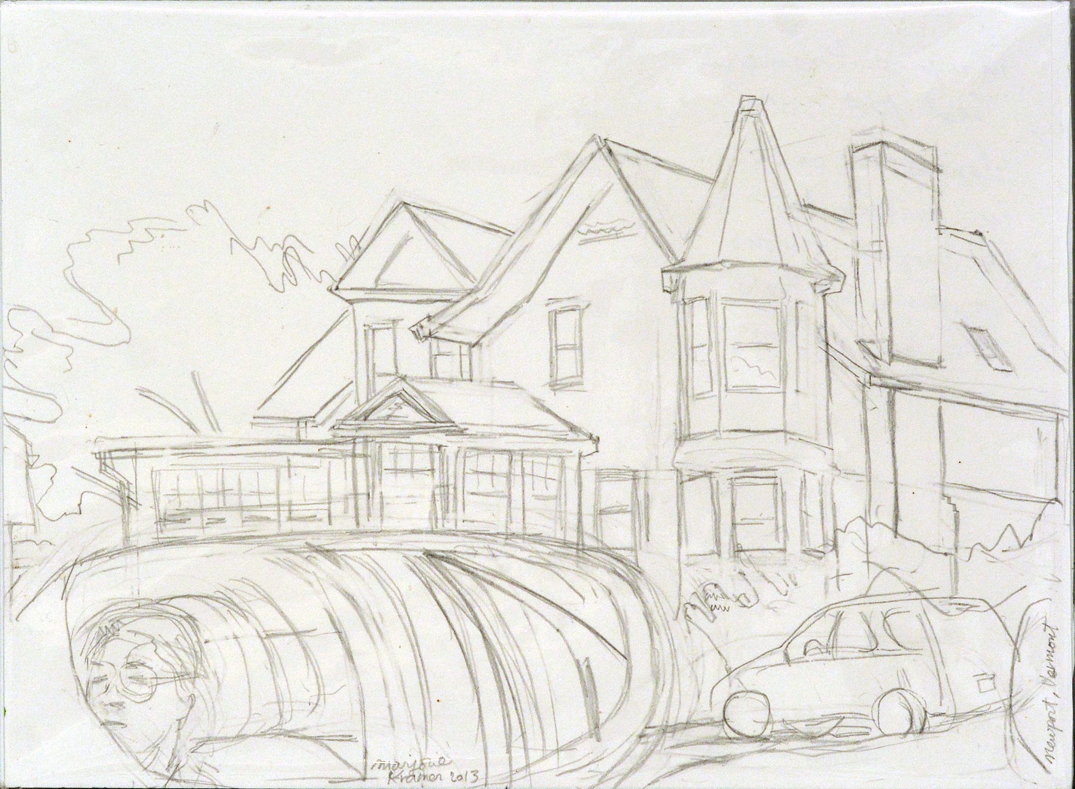 Nice Old House Drawing from Parking Lot, Newport, VT with Self PortraitEntry/Object ID