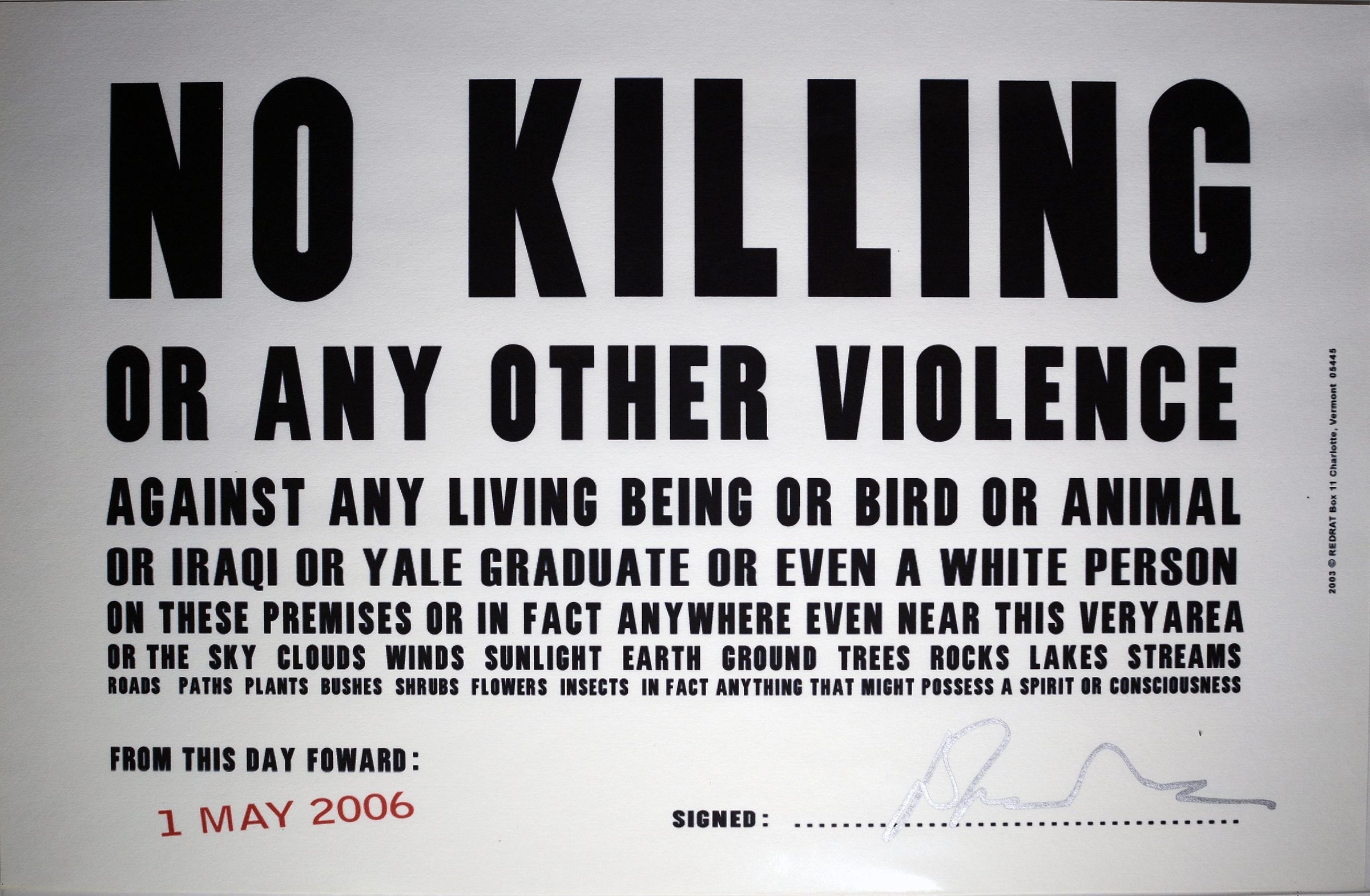 No Killing Posted Sign