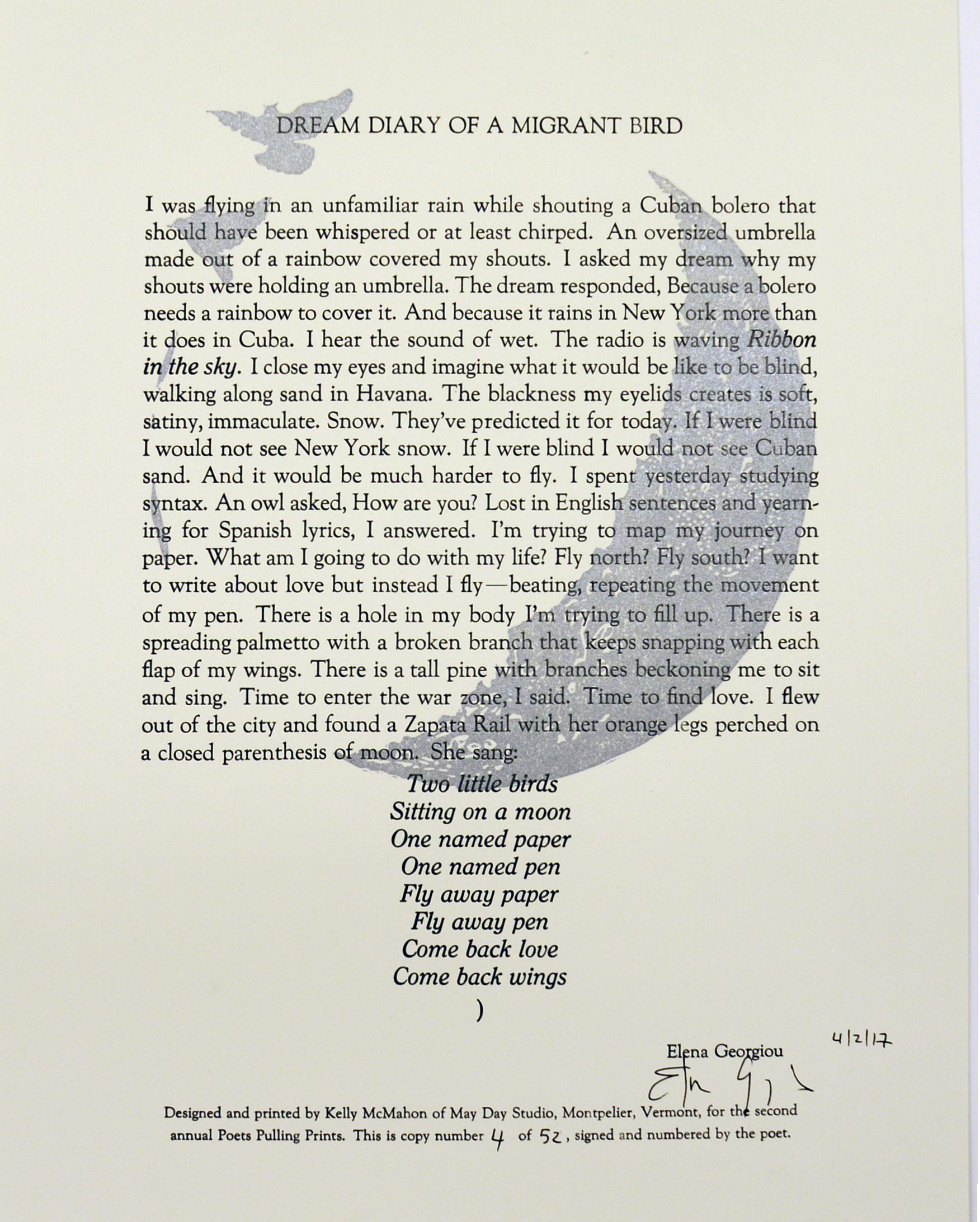 Second Annual Poets Pulling Prints, Dream Diary of a Migrant BirdEntry/Object ID