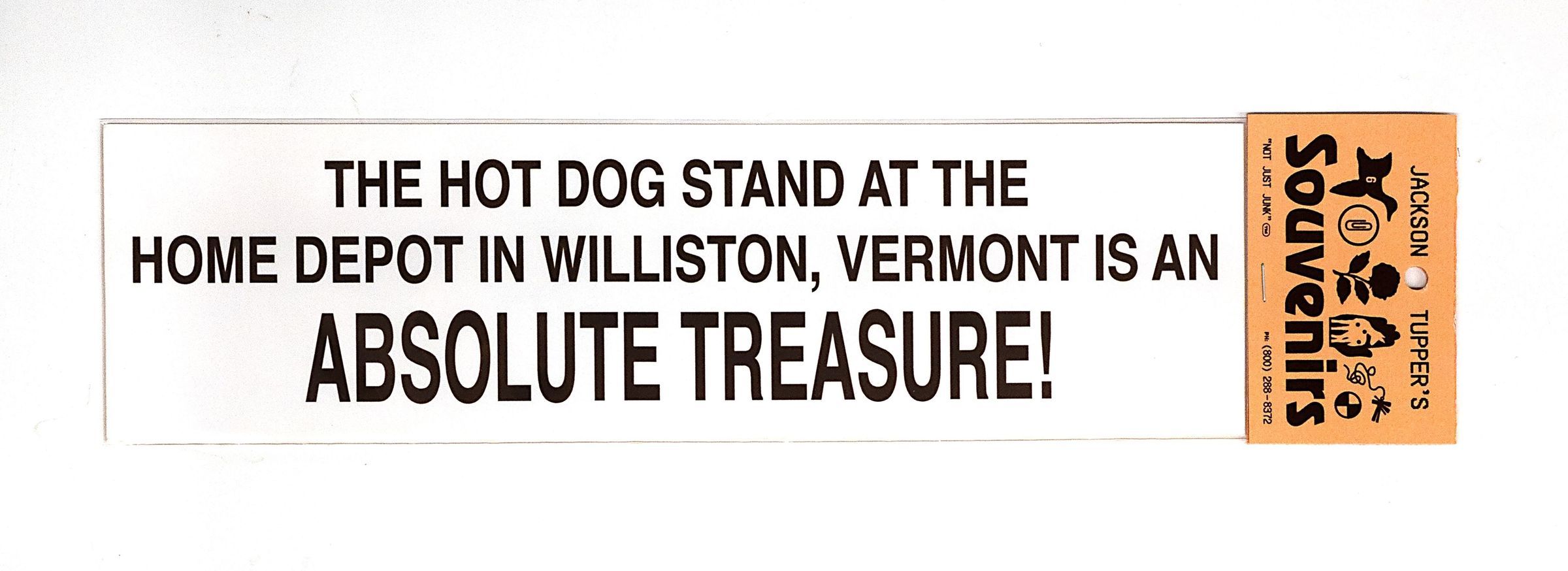 THE HOT DOG STAND AT THE HOME DEPOT IN WILLISTON, VERMONT IS AN ABSOLUTE TREASURE!Entry/Object ID
