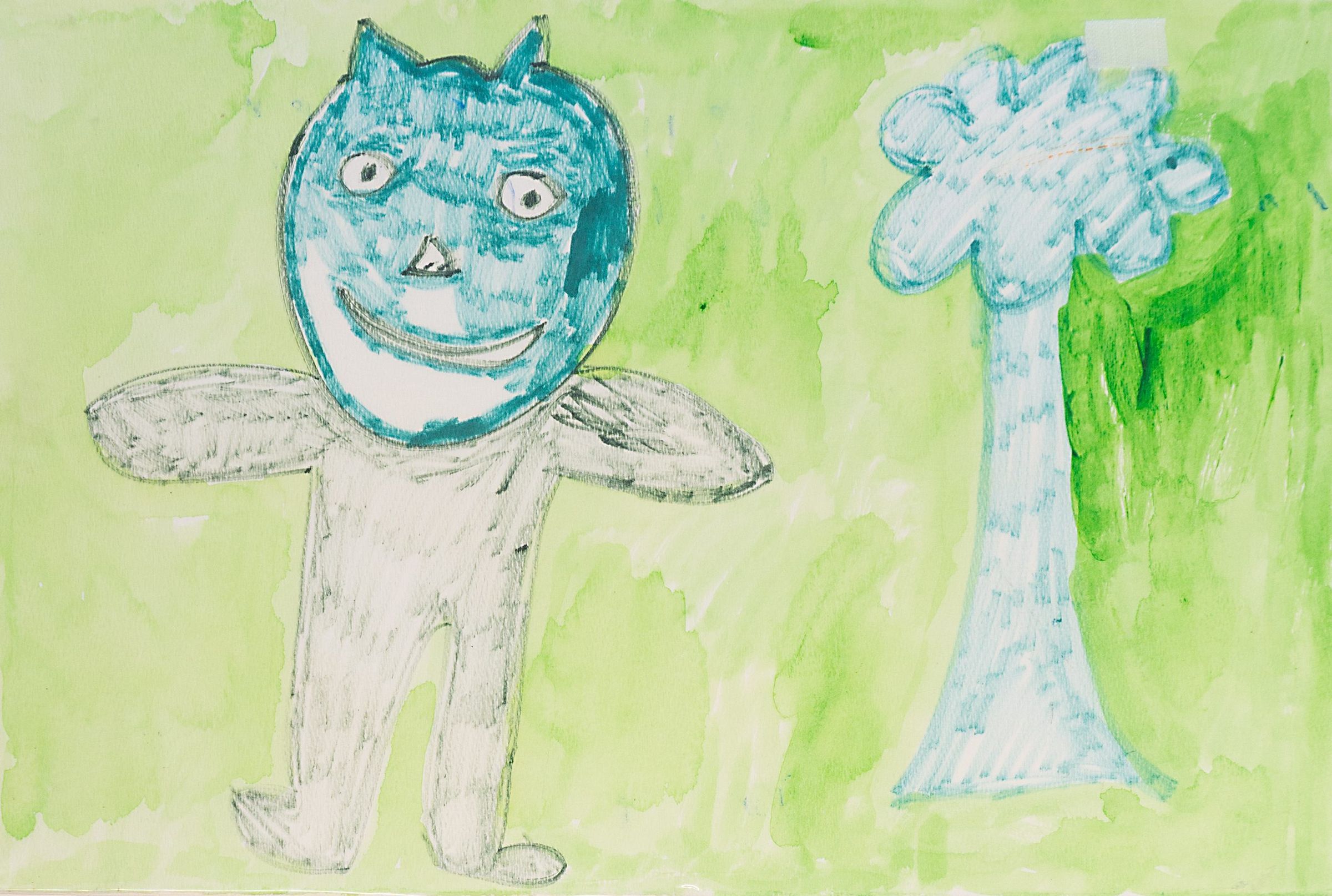 Untitled ("Apple-Headed" Creature and a Tree in a Green Background)Entry/Object ID