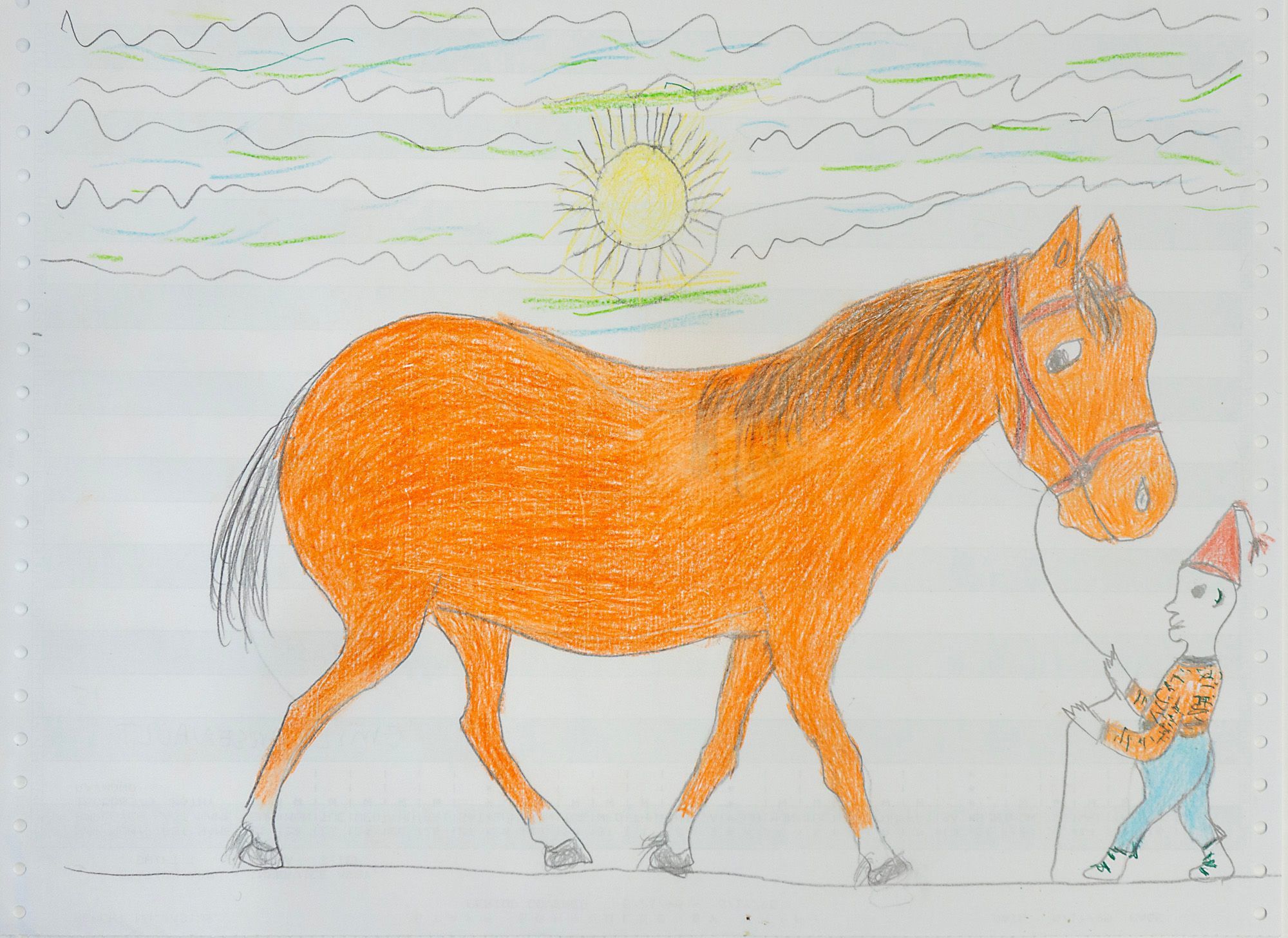 Untitled (Man w/Dunce Cap leading Orange Horse)Entry/Object ID