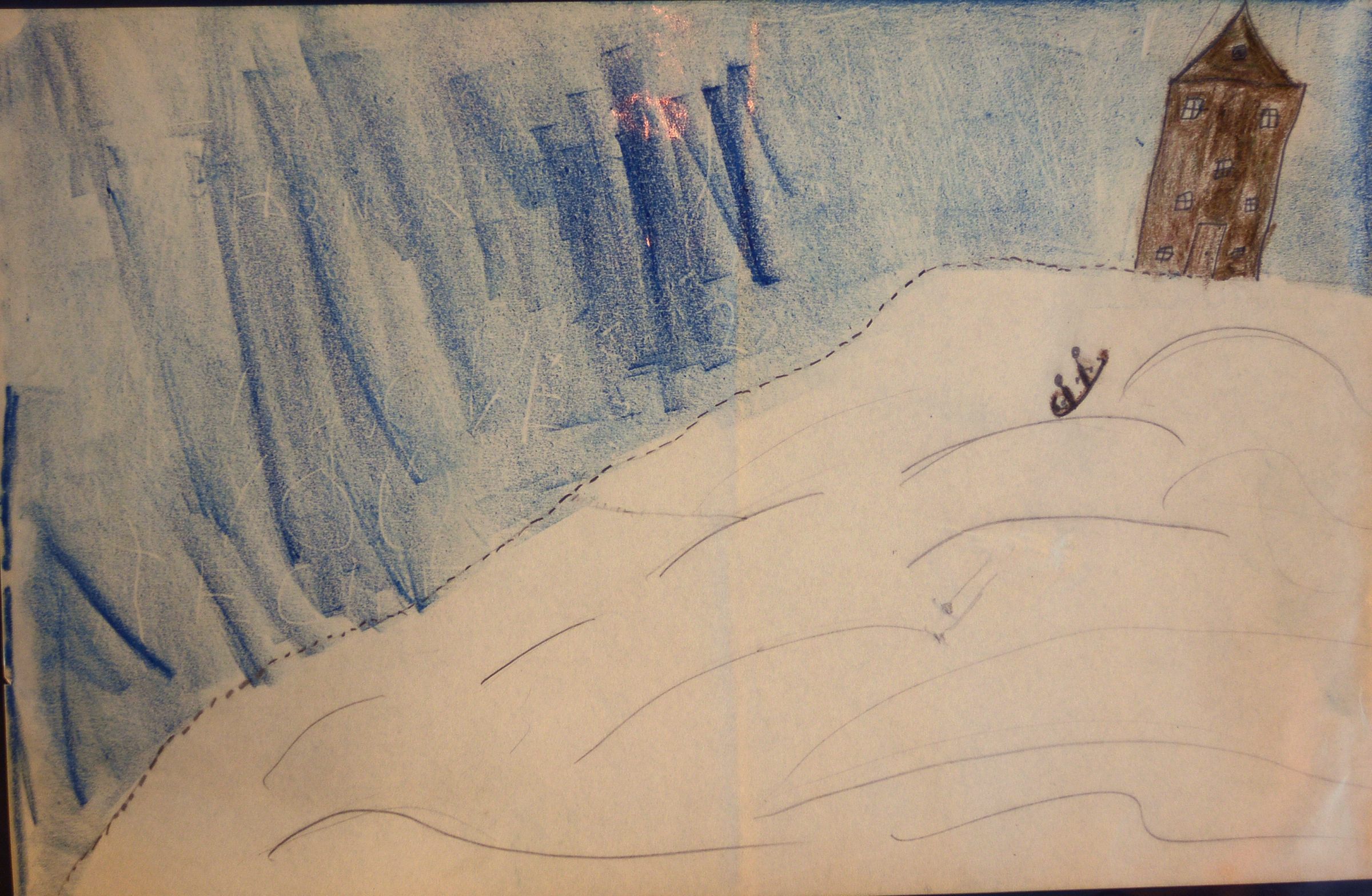 Untitled (sledding down hill from house)Entry/Object ID
