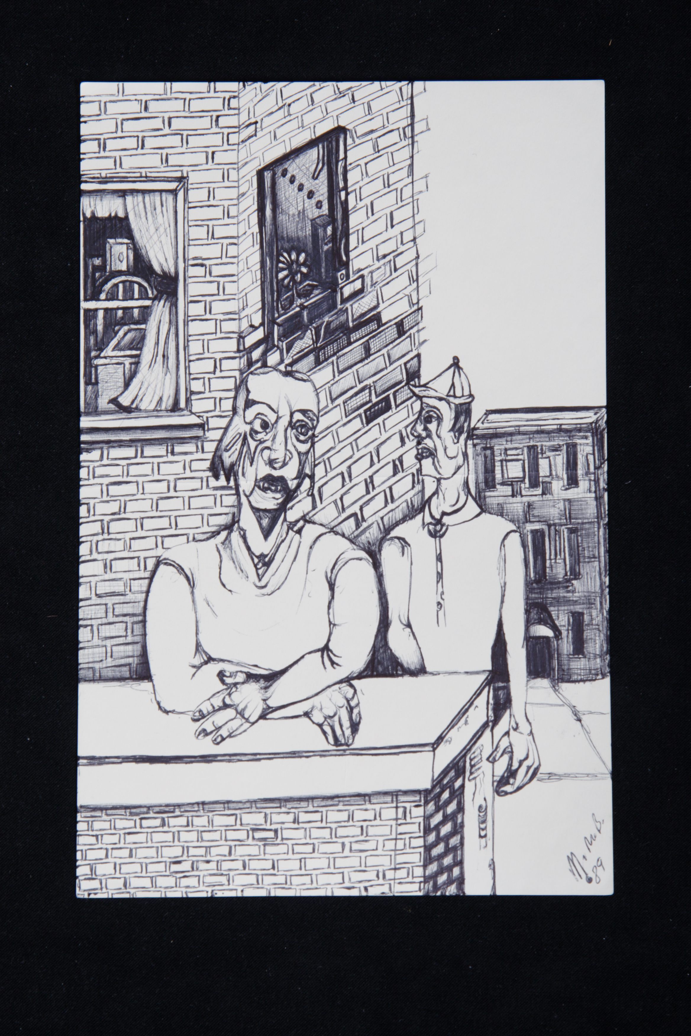 Untitled (Two figures outside brick building)Entry/Object ID