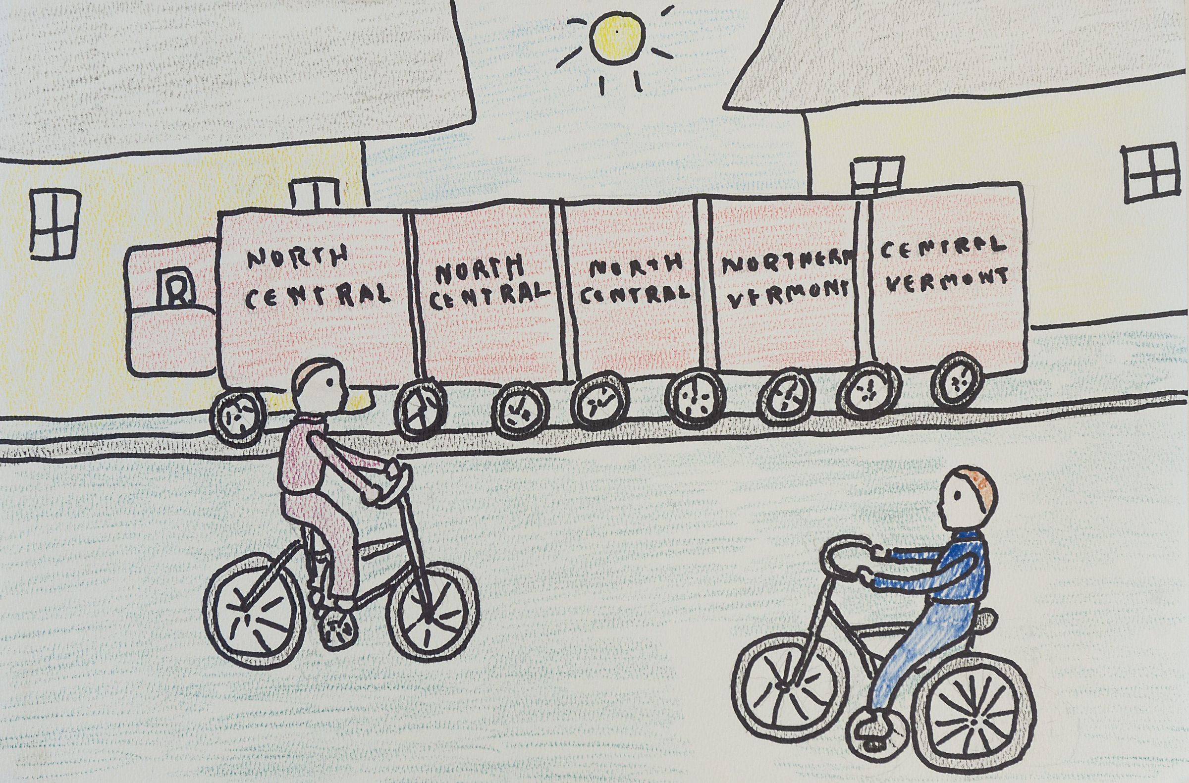 Untitled (Two People on Bicycles in front of a Stopped Railroad)Entry/Object ID