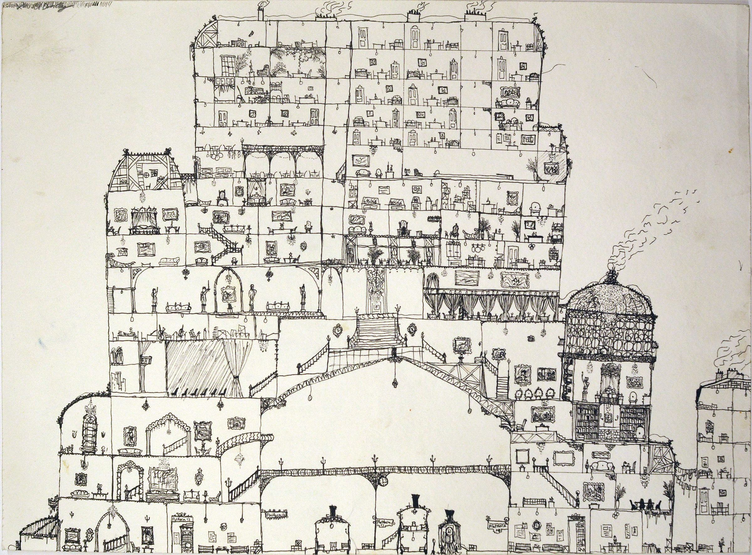 Untitled (Two Sided: Complex Building w/Interior Views and incomplete building on reverse)