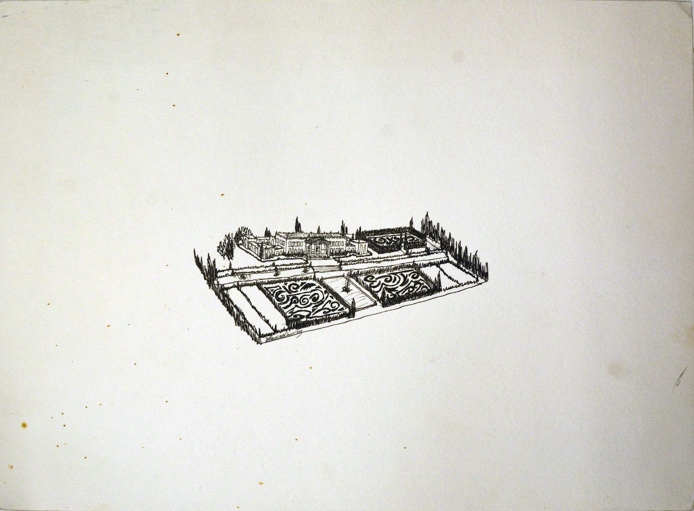 Untitled (Two Sided: Manor Home w/Formal Gardens on one side and Twin towers/NYC skyline on reverse side)