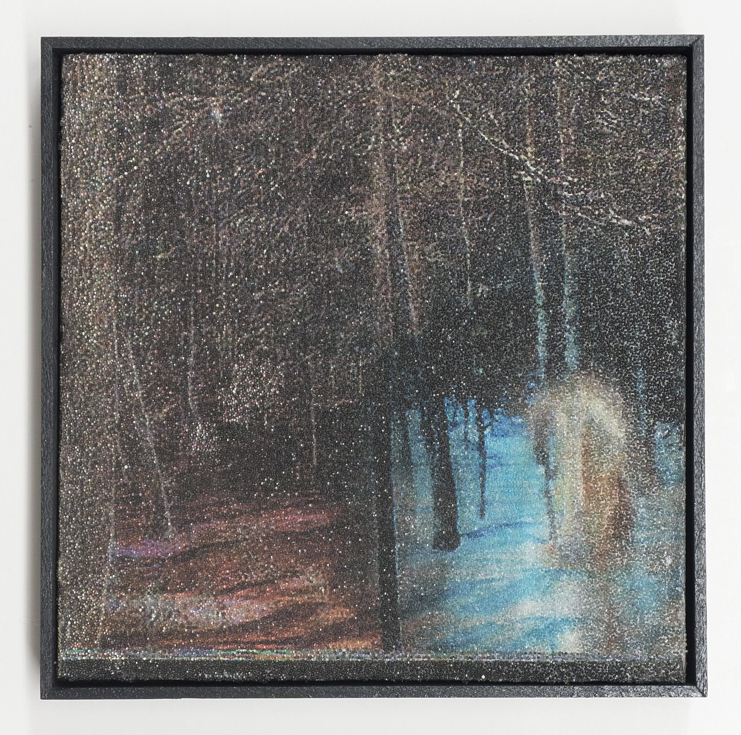 Pigment print, glass beads, and oil on paper mounted on woodDate made