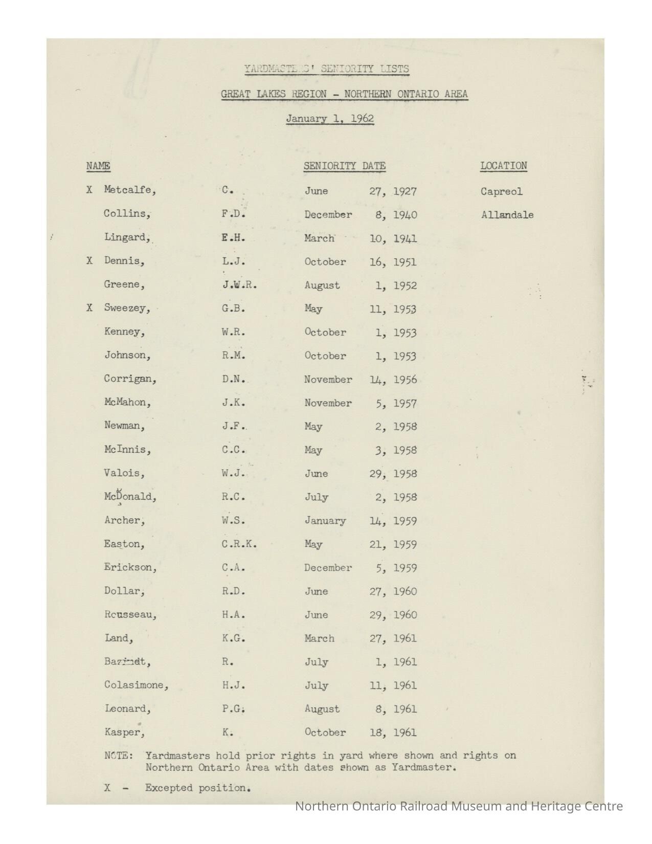 Document, Seniority List, Canadian National Railway, Northern Ontario Division.Collection